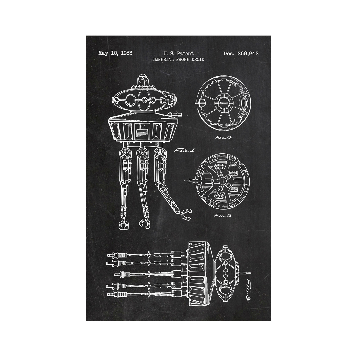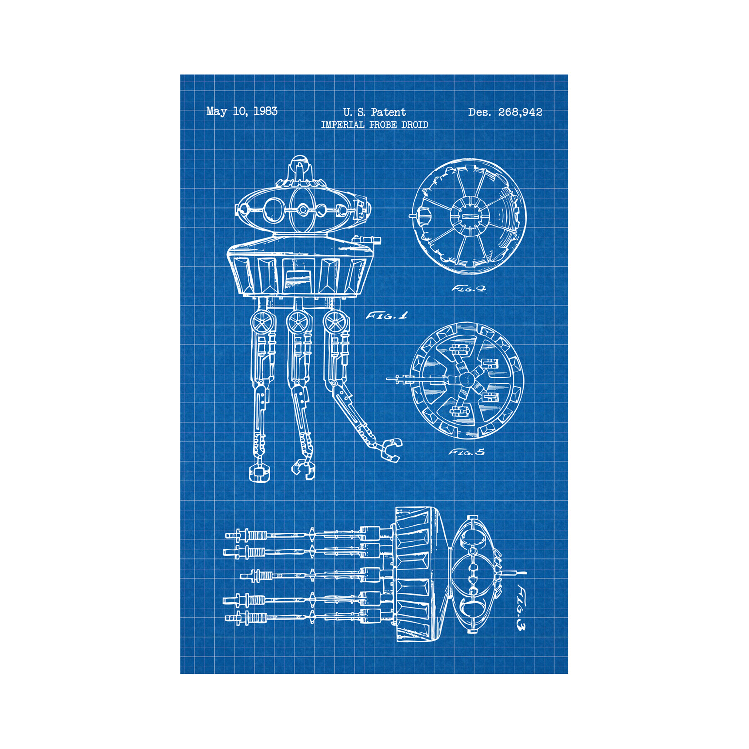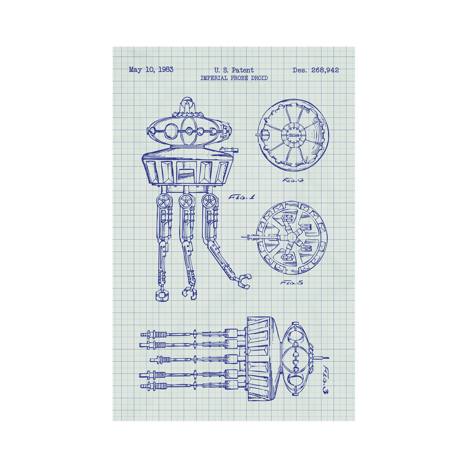 Rendered with acrylic ink on top of thick, high quality 100 lb. paper, this Star Wars patent print of an Imperial Probe Droid has stemmed from the inspiration of the original creators! Screen printed artwork can be identified by its thick raised ink, which seems to catch the eye from every angle. By hand printing every order, Inked and Screened’s team of artists create the prominent depth of field and texture that is found on each poster