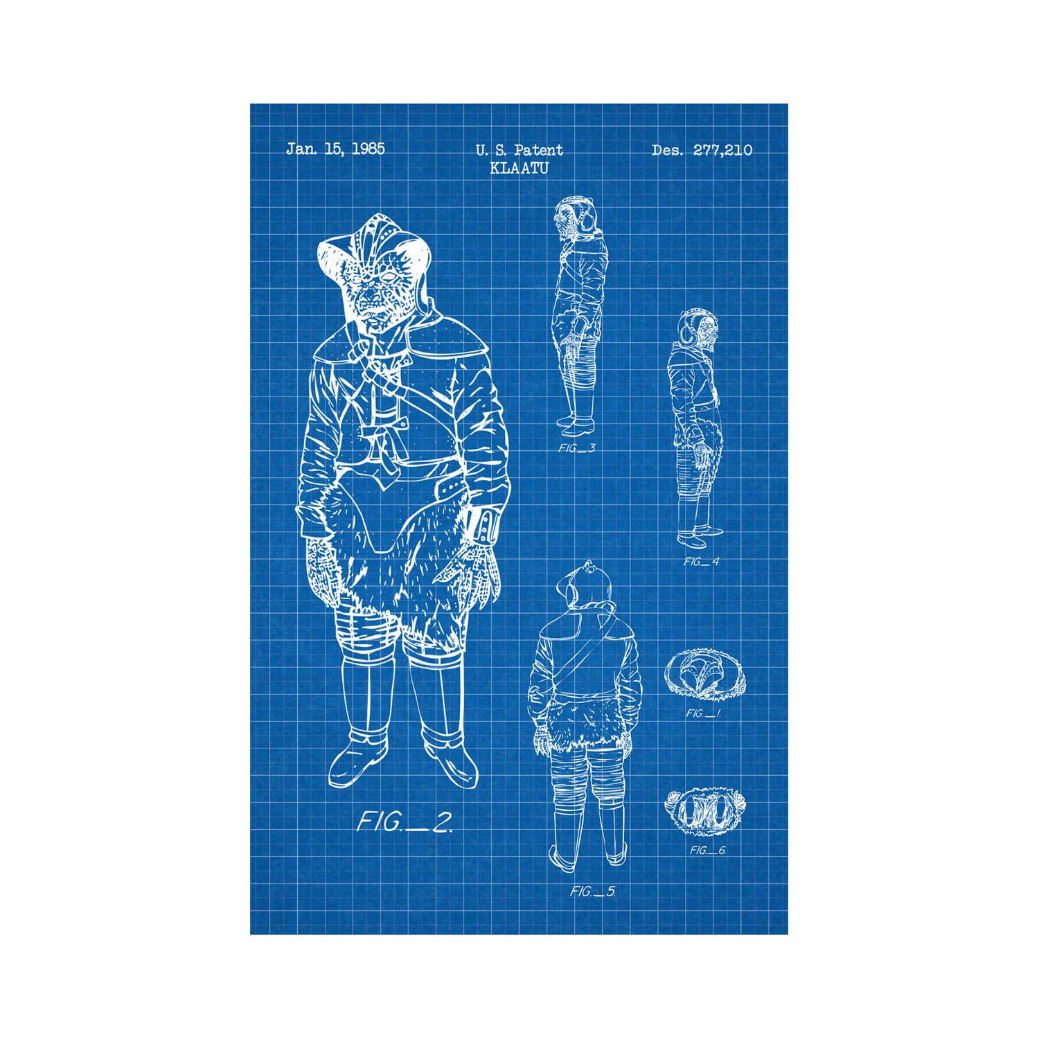 Rendered with acrylic ink on top of thick, high quality 100 lb. paper, this Star Wars patent print of Klaatu has stemmed from the inspiration of the original creators! Screen printed artwork can be identified by its thick raised ink, which seems to catch the eye from every angle. By hand printing every order, Inked and Screened’s team of artists create the prominent depth of field and texture that is found on each poster