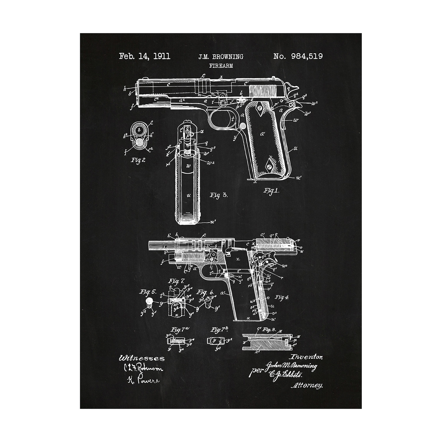 This Browning Firearm patent print depiction is rendered with acrylic ink on top of thick, high quality 100 lb. paper. Screen printed artwork can be identified by its thick raised ink, which seems to catch the eye from every angle. By hand printing every order, Inked & Screened’s team of artists create the prominent depth of field and texture that is found on each poster.