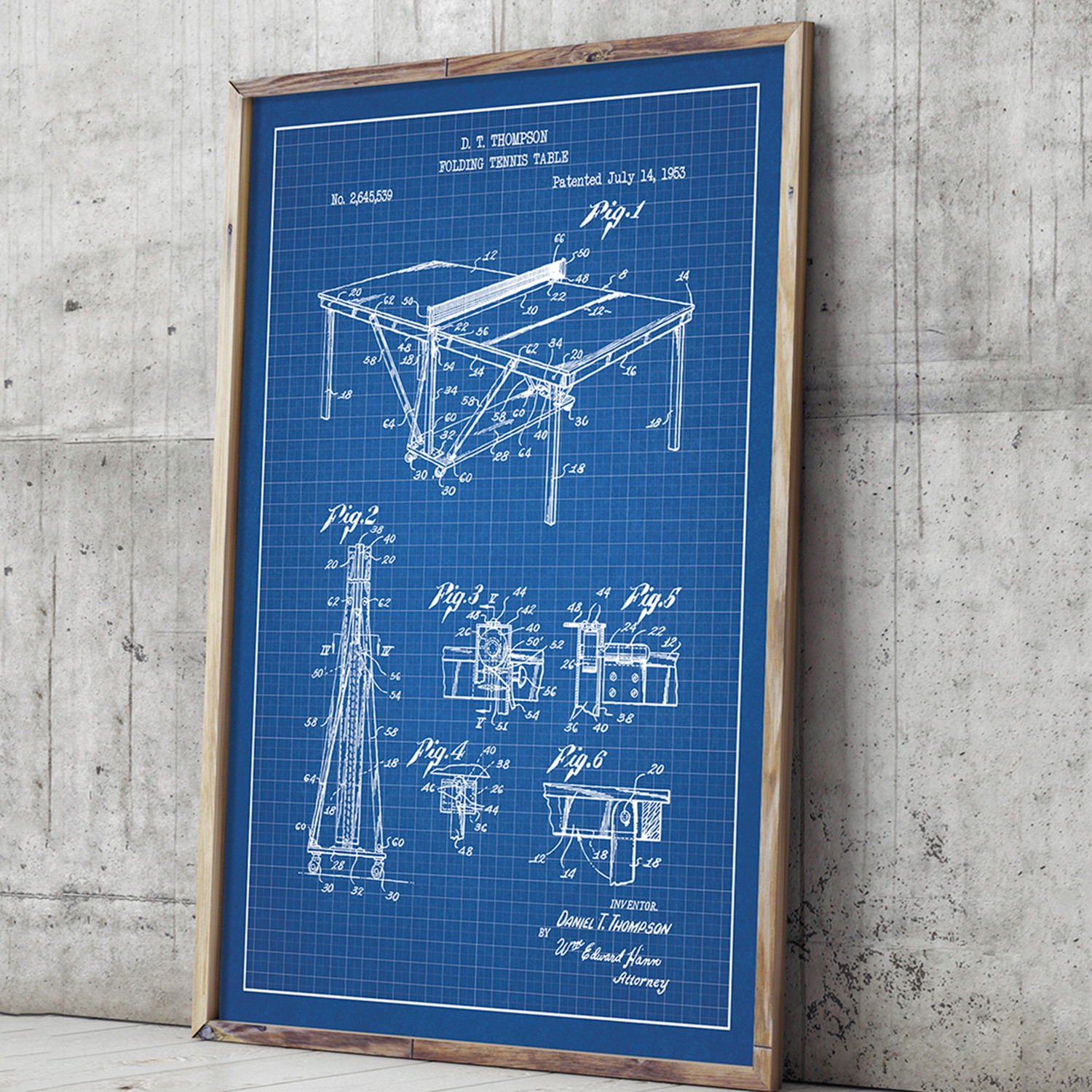 This stunning screen print features a blueprint-style image of the original desing for a convertible pool table. Hang it in your man-cave, or your office for the world'd most unique and artistic take on merchandise for sports lovers.
