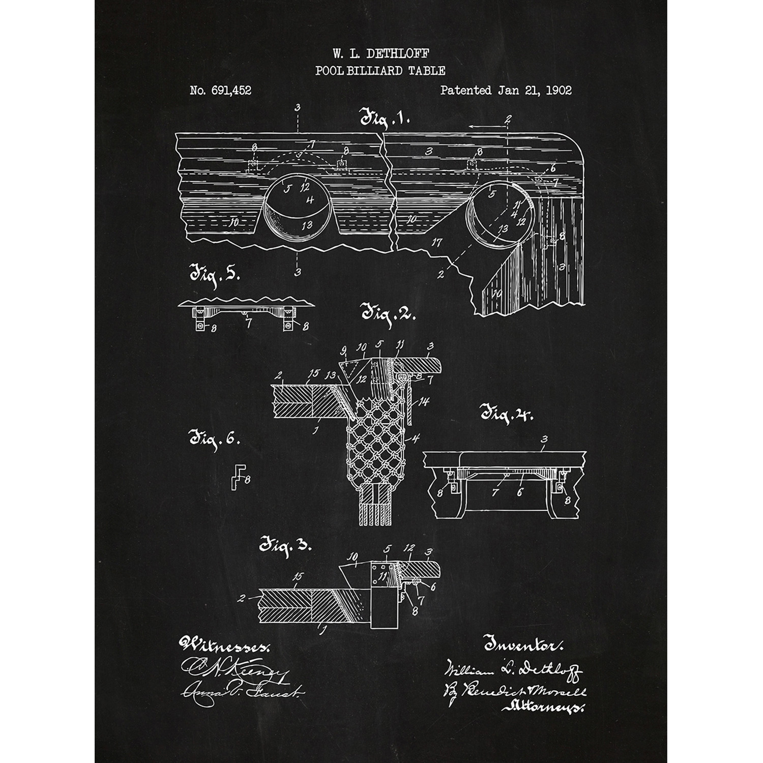 This stunning screen print features a blueprint-style image of the original patent for the classic pool table. Hang it in your man-cave, or your office for the world'd most unique and artistic take on merchandise for sports lovers.