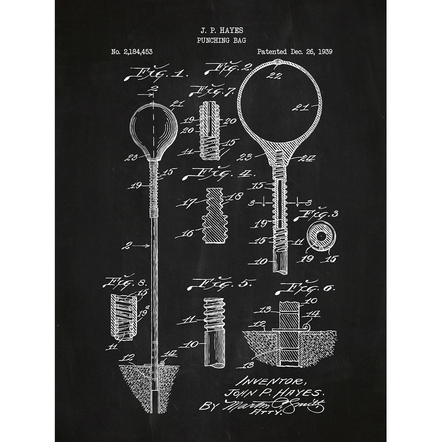 This stunning screen print features a blueprint-style image of the original patent for the classic speed bag. Hang it in your man-cave, or your office for the world'd most unique and artistic take on merchandise for sports lovers.