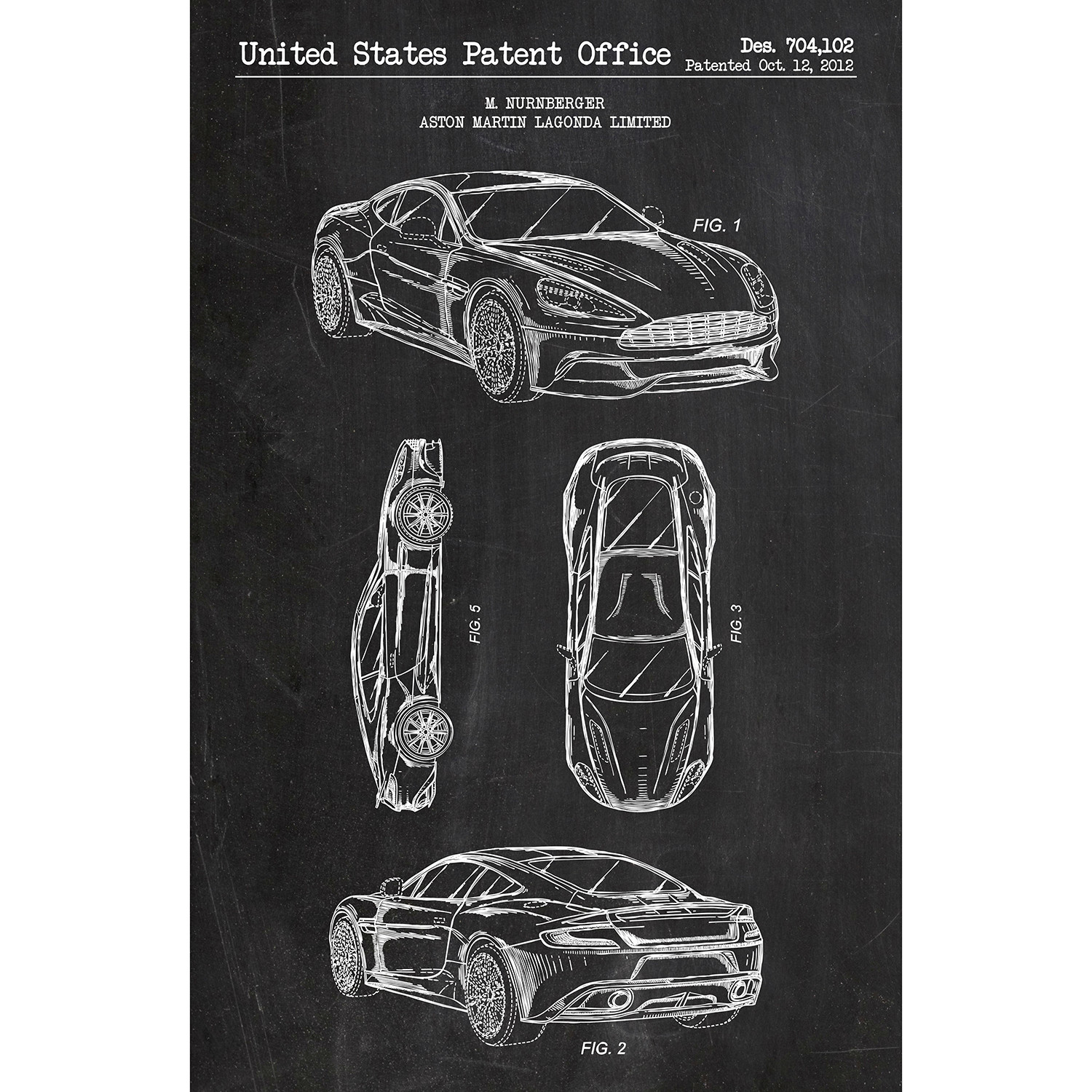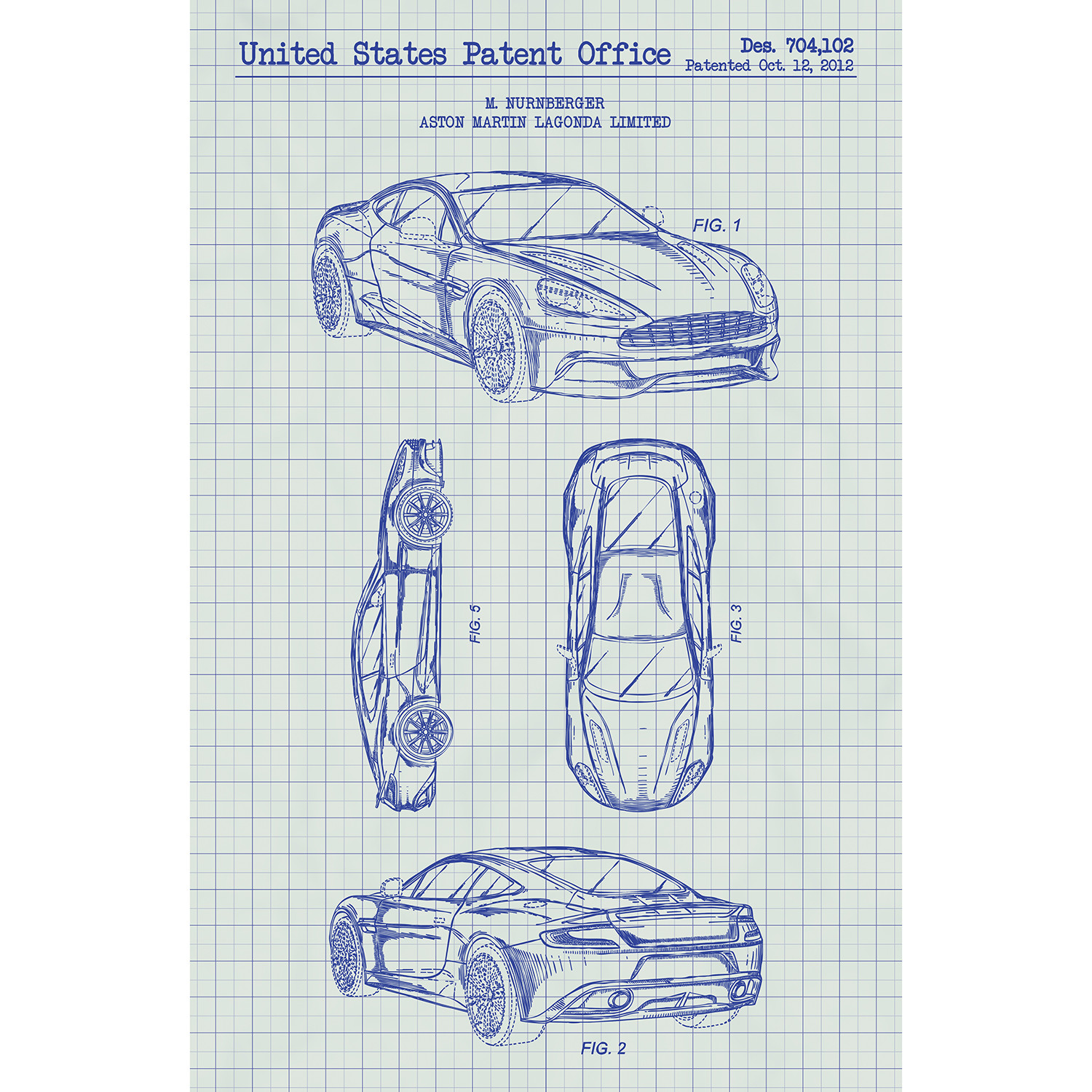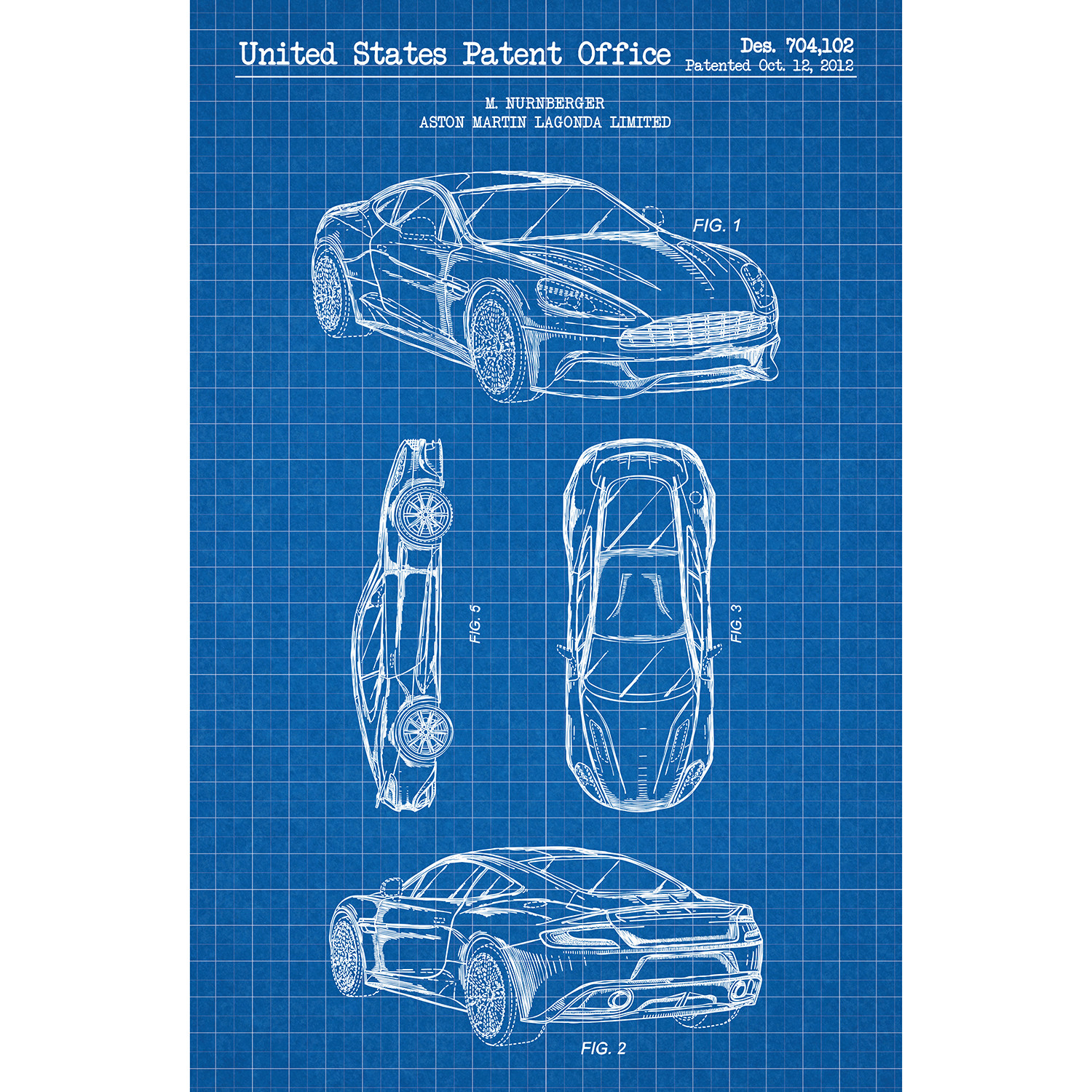 This Aston Martin Vanquish by M. Nurnberger patent print depiction is rendered with acrylic ink on top of thick, high quality 100 lb. paper. Screen printed artwork can be identified by its thick raised ink, which seems to catch the eye from every angle. By hand printing every order, Inked & Screened’s team of artists create the prominent depth of field and texture that is found on each poster.