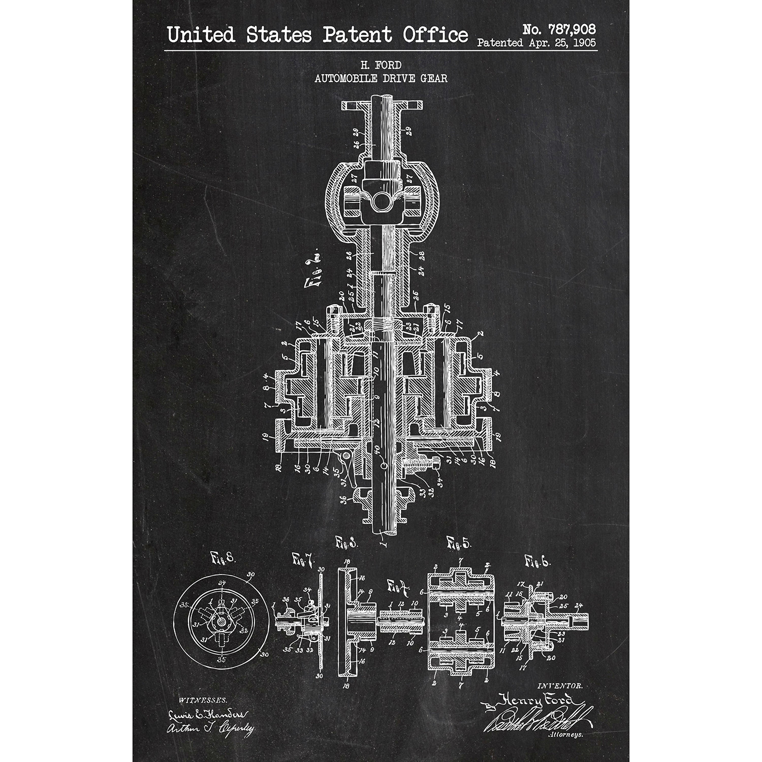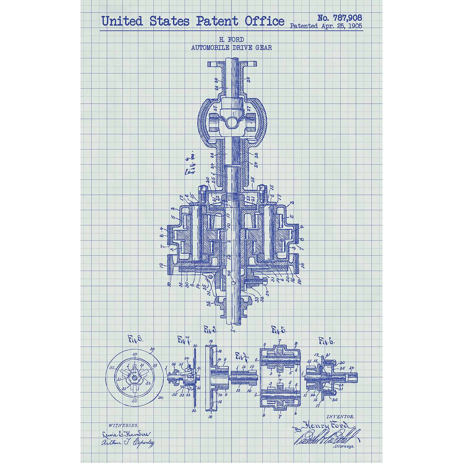 This Automobile Drive Gear patent print depiction is rendered with acrylic ink on top of thick, high quality 100 lb. paper. Screen printed artwork can be identified by its thick raised ink, which seems to catch the eye from every angle. By hand printing every order, Inked & Screened’s team of artists create the prominent depth of field and texture that is found on each poster.