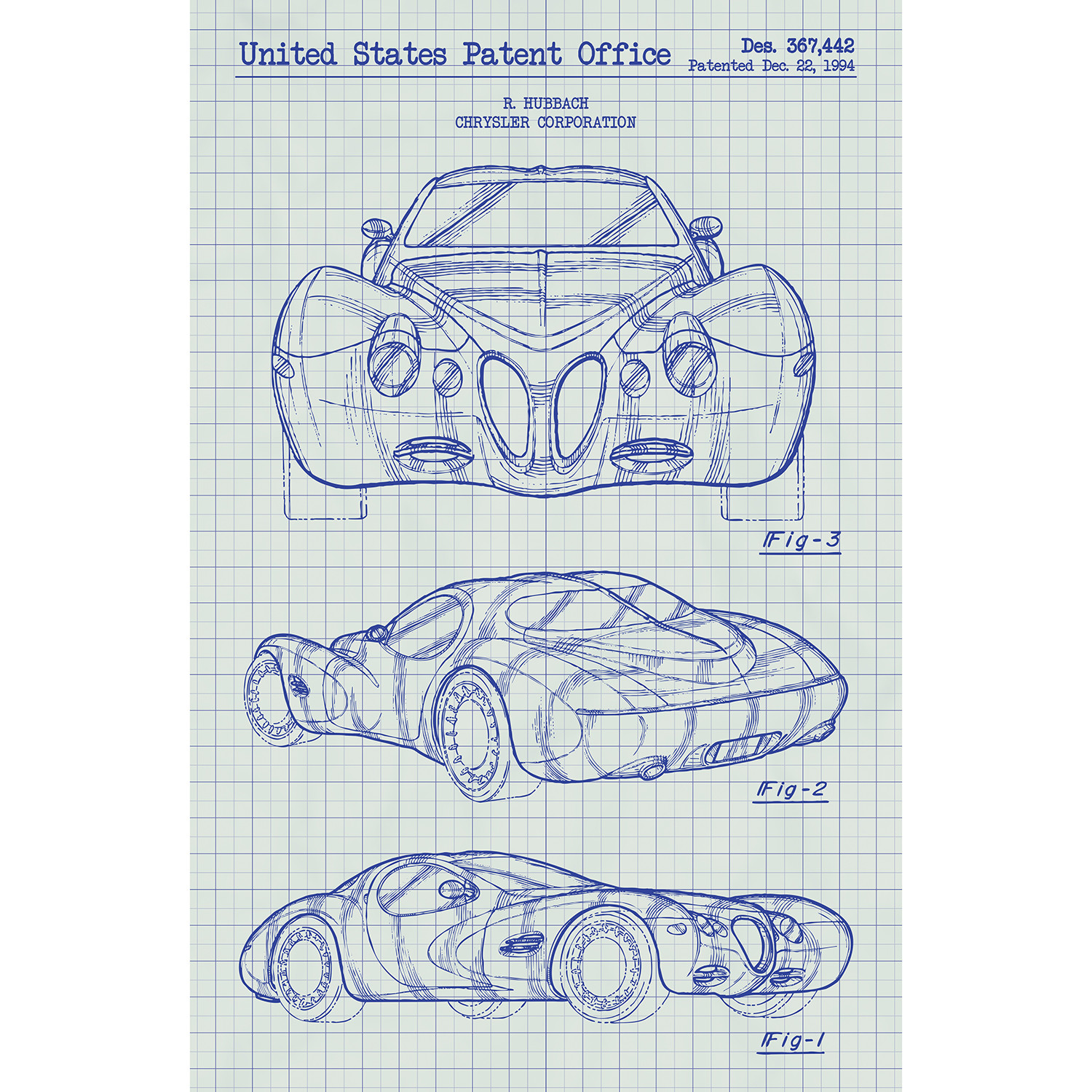This Chrysler Concept Car patent print depiction is rendered with acrylic ink on top of thick, high quality 100 lb. paper. Screen printed artwork can be identified by its thick raised ink, which seems to catch the eye from every angle. By hand printing every order, Inked & Screened’s team of artists create the prominent depth of field and texture that is found on each poster.