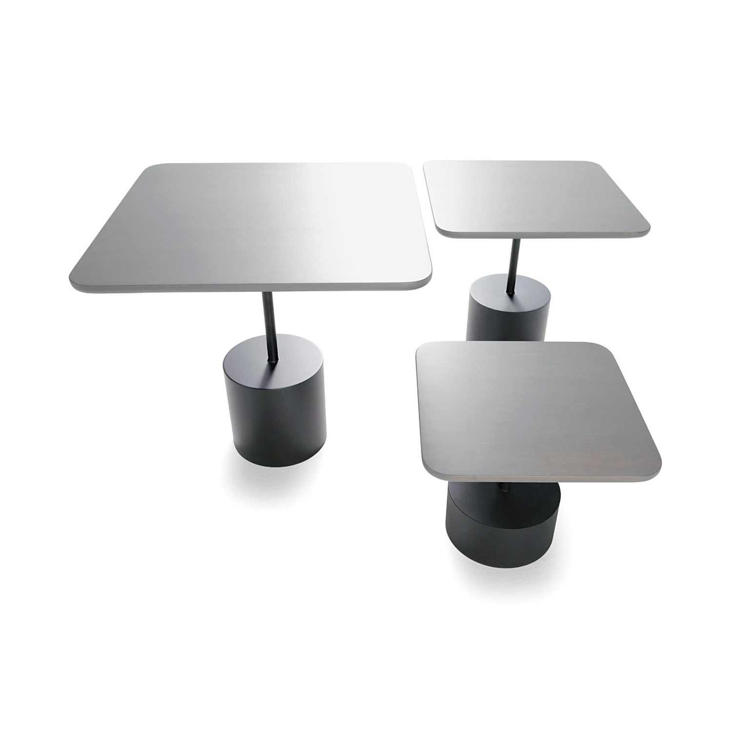 This set of square sofa tables features a distinctive round, heavy base that enables them to be placed quite close together. Put them together to make one coffee table "pod" or move them apart to use in different areas of the room - they're super-versatile and can keep your living room from becoming static.