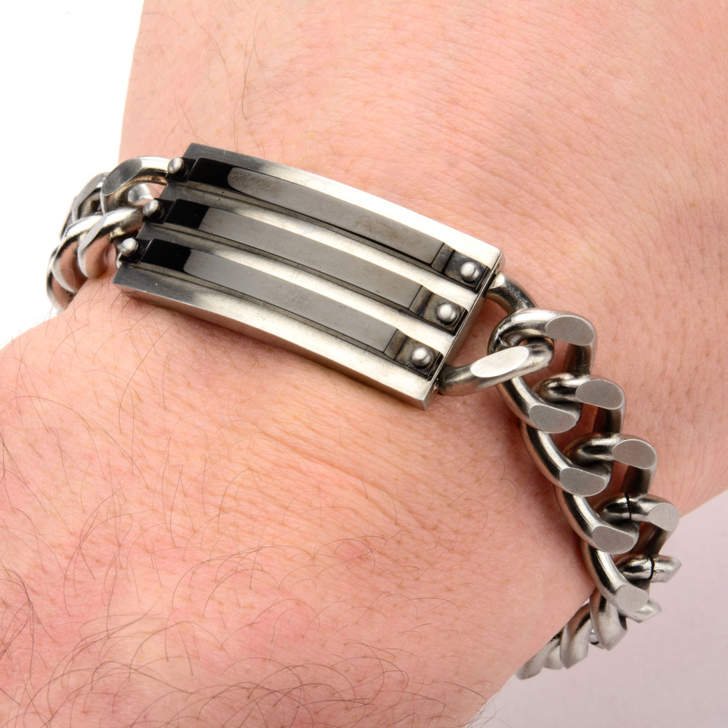 Matte Steel ID Bracelet // Black IP Lines