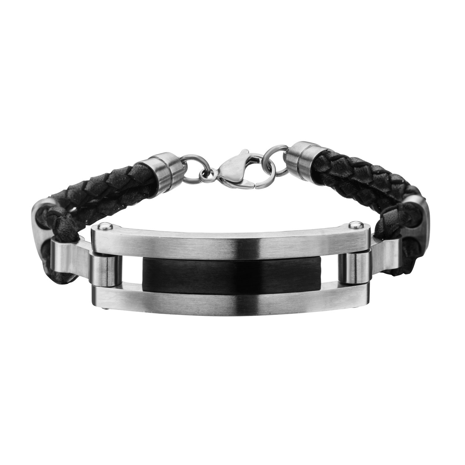 With plated stainless steel details accenting its woven leather, this men's bracelet from Inox is the perfect accessory to wear, whether you're dressed up or dressed down.