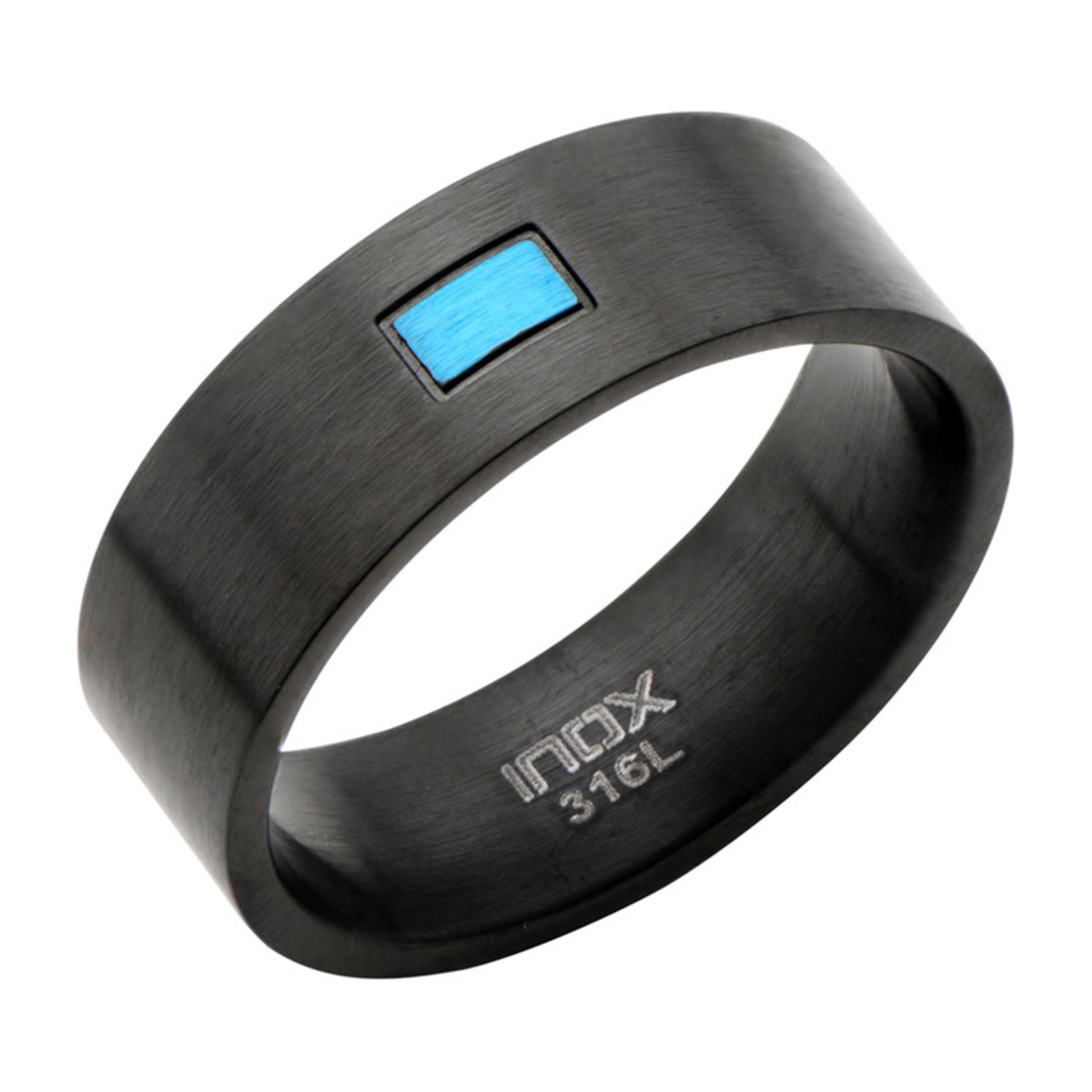 Inox creates only the most masculine pieces, like this Stainless Steel Rectangle Center Ring, for the most discerning man. Their collection of blue steel jewelry is cleverly crafted with colored stainless steel and built with intricate details that make each one completely unique and subtly eye-catching.
