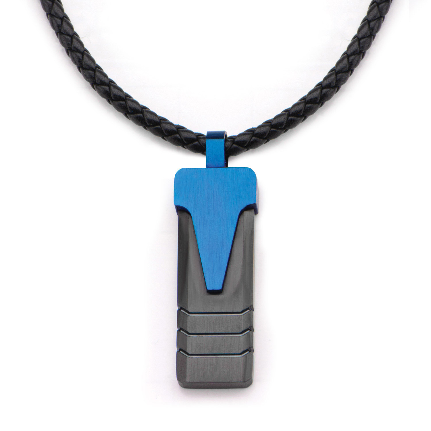 — Men's Stainless Steel Blue IP Triangle & Black IP Groove Line Pendant