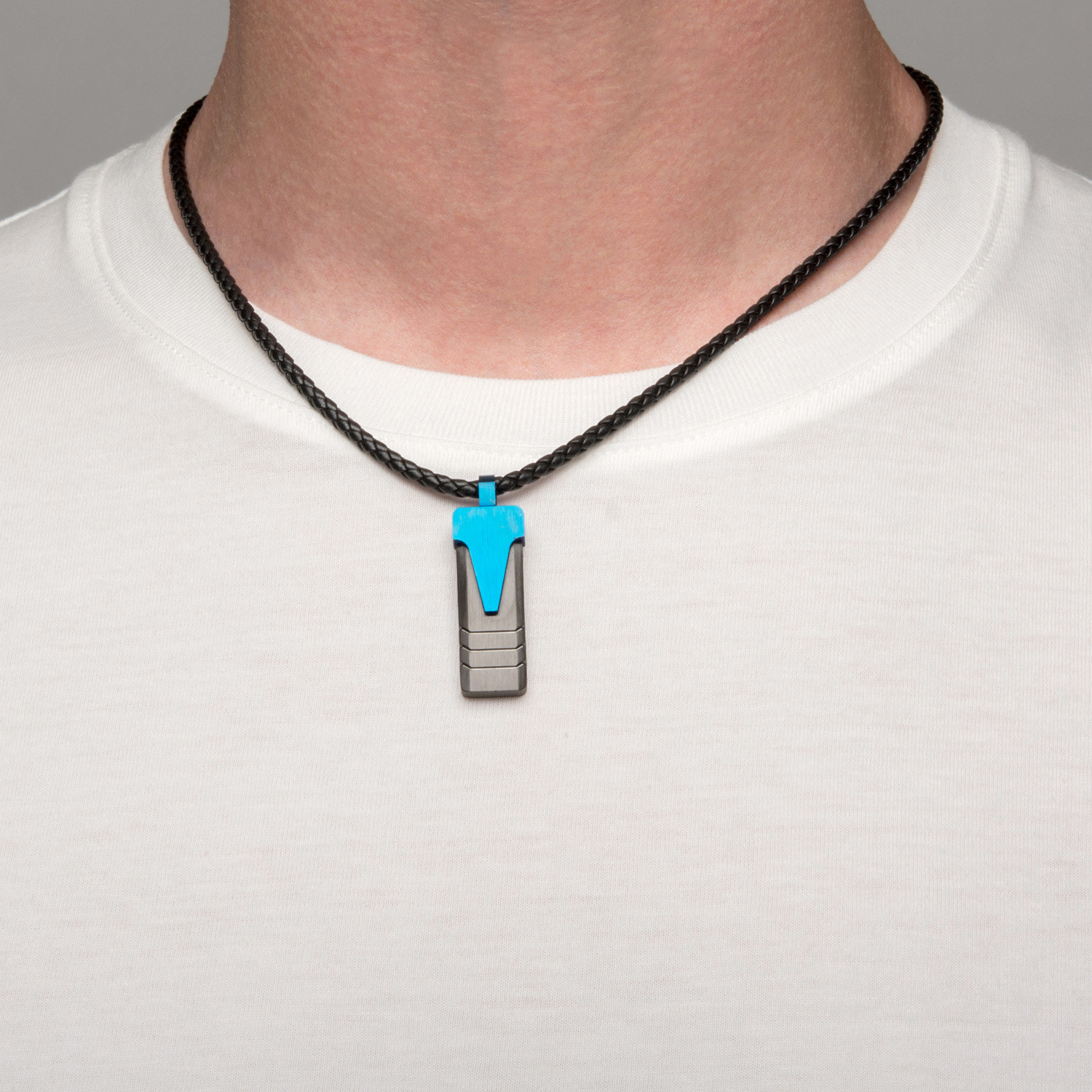 Inox creates only the most masculine pieces, like this Triangle Groove Line Pendant + Leather Necklace, for the most discerning man. Their collection of blue steel jewelry is cleverly crafted with colored stainless steel and built with intricate details that make each one completely unique and subtly eye-catching.