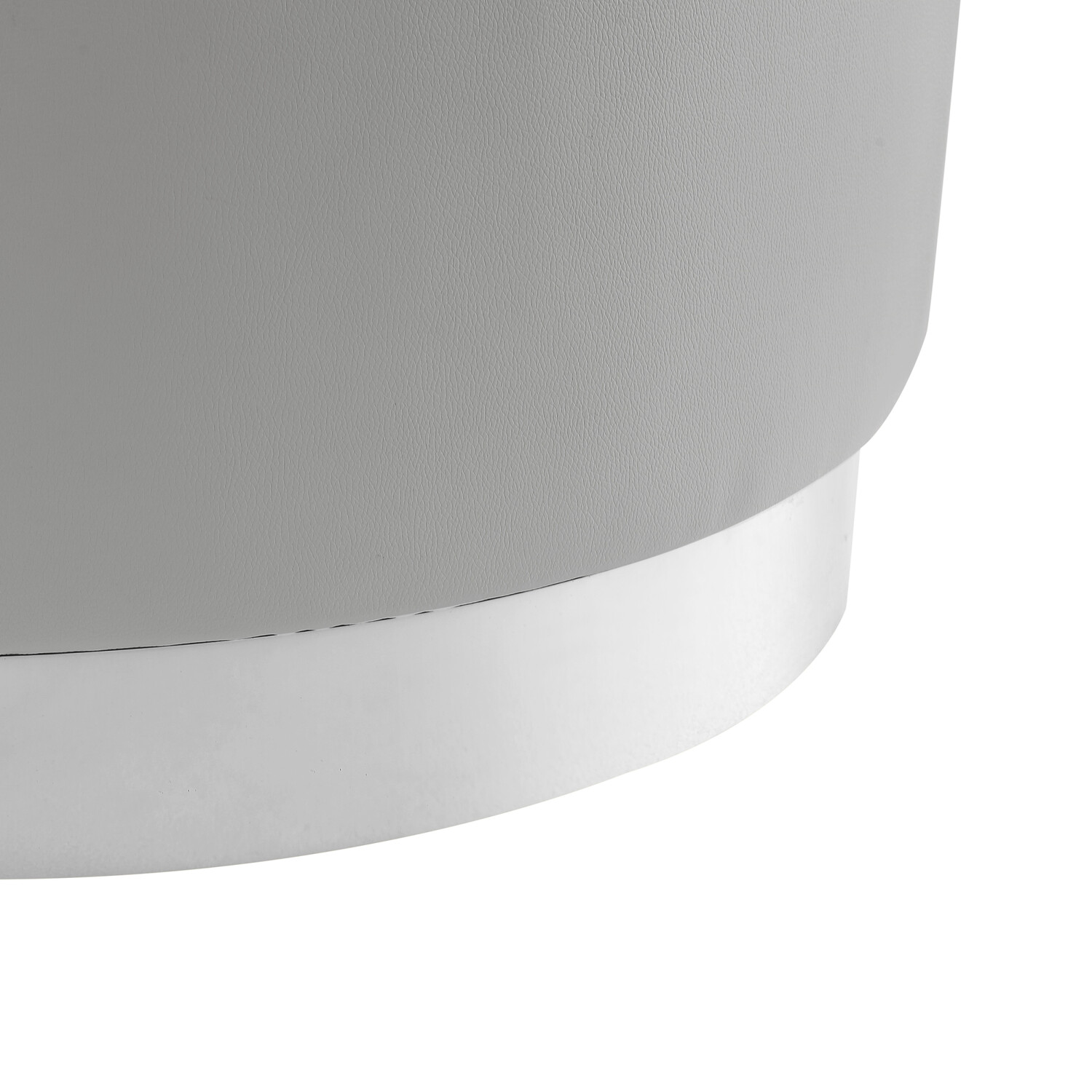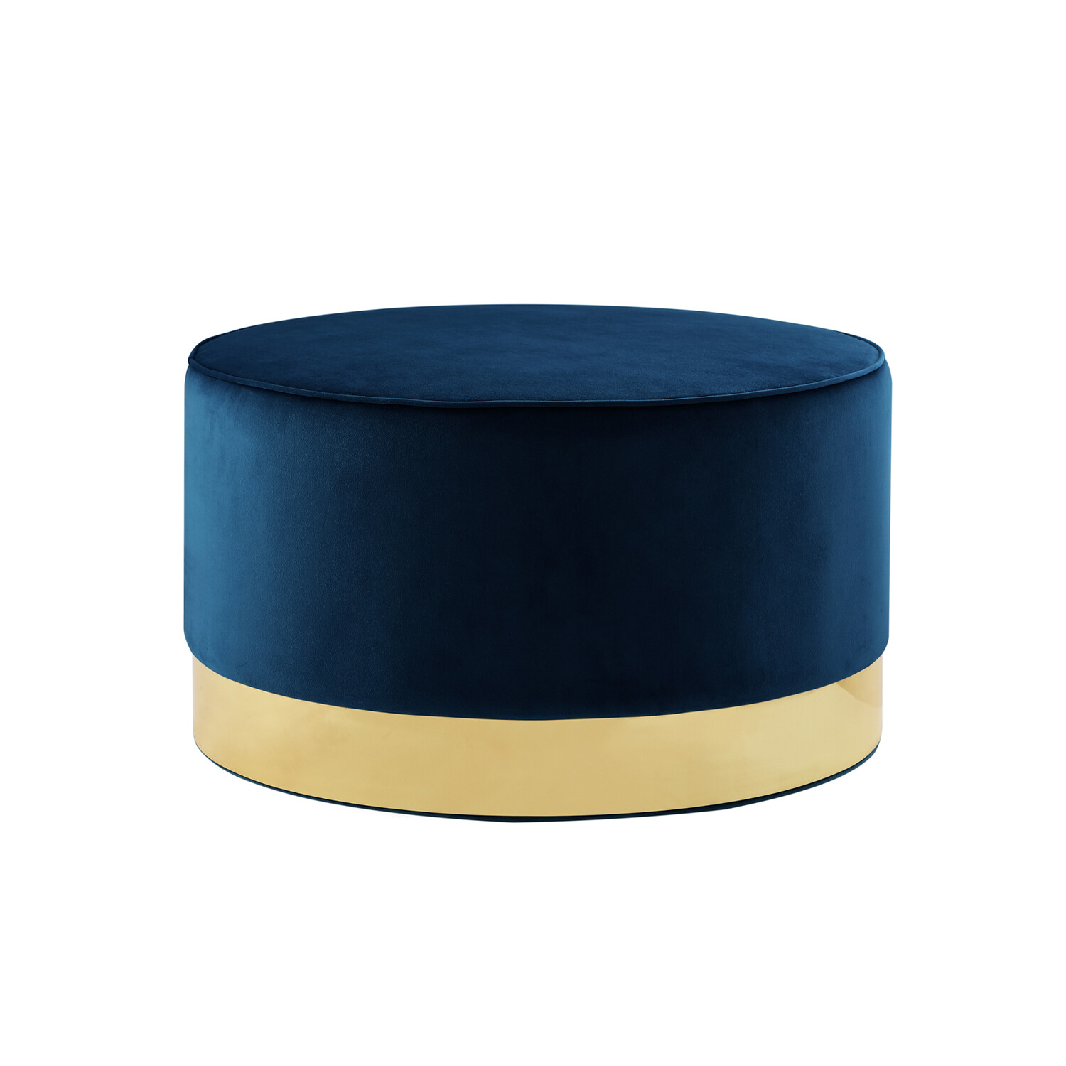This ottoman's round silhouette blends effortlessly into any casual space. It is an accent piece that is sure to enhance the aesthetics of any modern household. Free of unnecessary embellishments, this velvet/leather PU round cocktail ottoman is both a simple and functional piece. It features a glossy stainless steel base and a comfortably upholstered top.