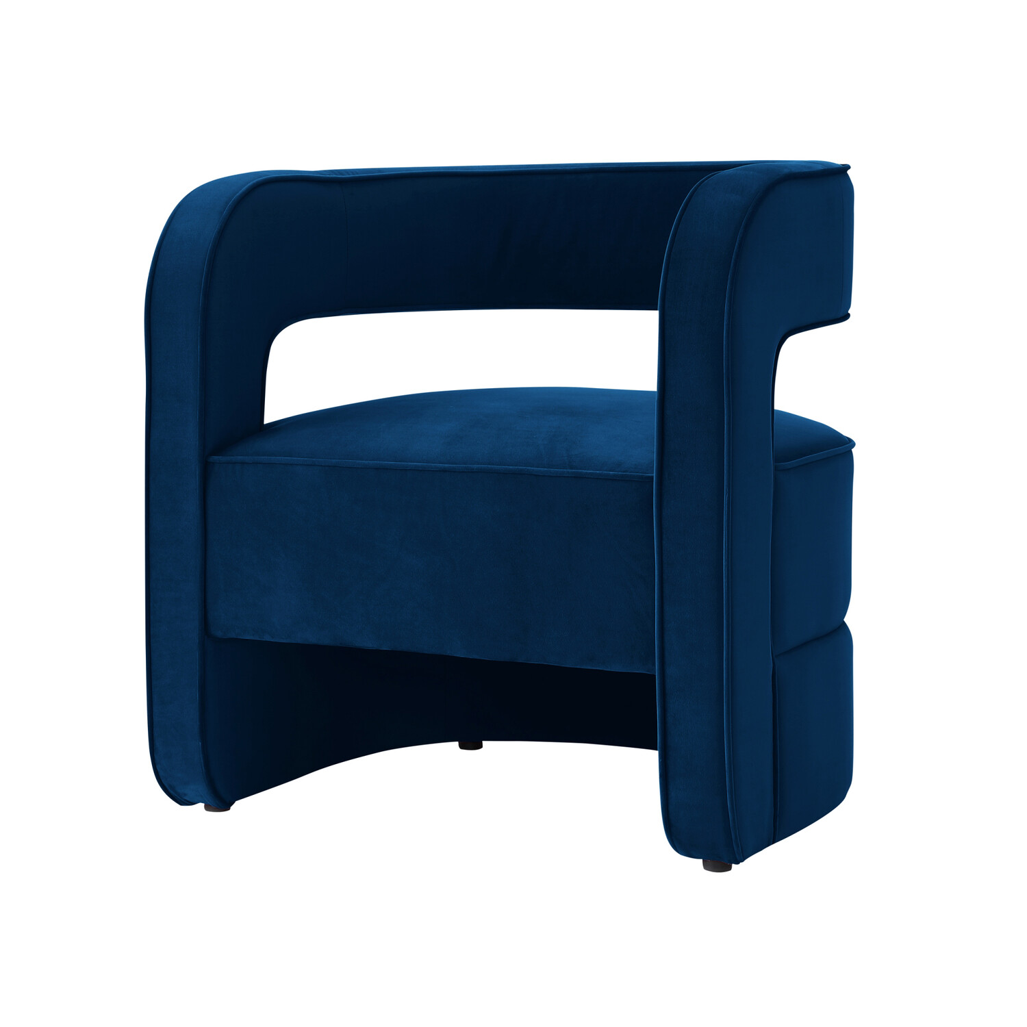 This barrel accent chair is a great way to underscore your room’s style while offering convenience and mobility while you lounge. It features foam filling and velvet upholstery for a cushioned touch worth sinking into. The open-back design and piping along the outer edge add contemporary style to this piece, making it the perfect addition to any room in your home.