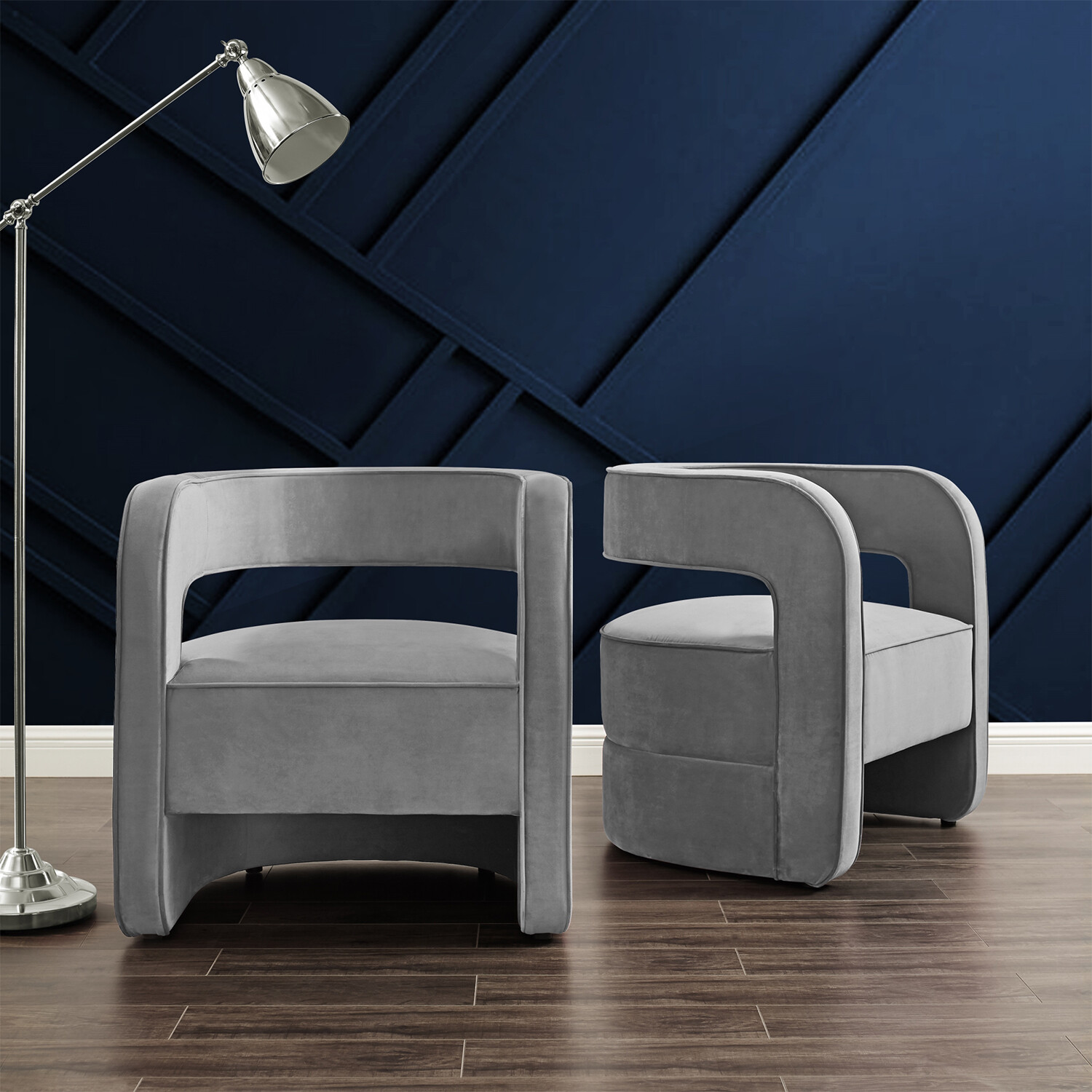 Neil Velvet Accent Chair Open Barrel Back
