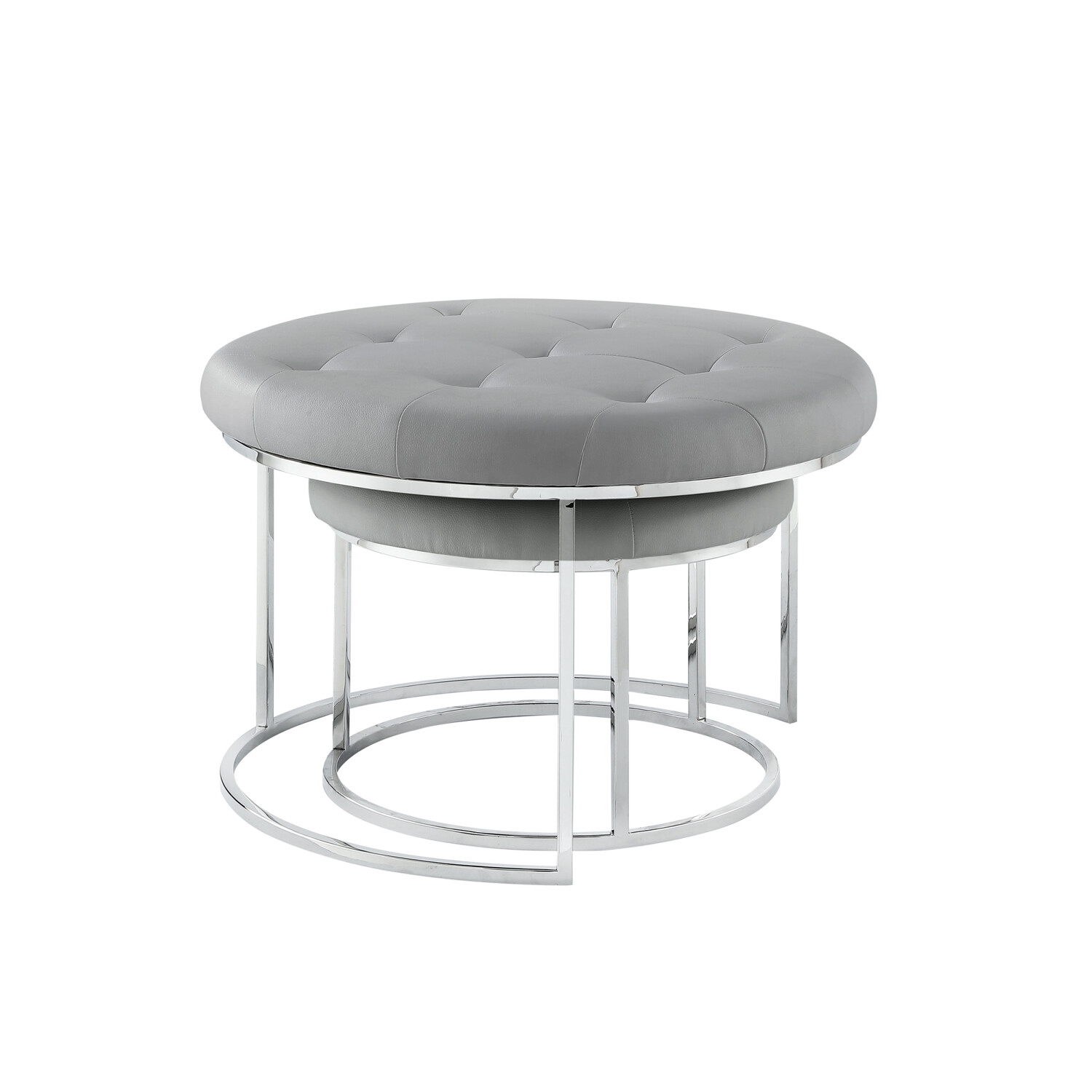 The Nesting Ottoman's round silhouette blends effortlessly into any casual space. It is an accent piece that is sure to enhance the aesthetics of modern and contemporary households. Free of unnecessary embellishments, this classic tufted ottoman with supple upholstery and a cushioned top is a simple and functional piece. This space-saving nesting ottoman is the perfect height for a variety of uses and it features an exotic look that matches any style room to create an inviting and comfortable atmosphere to come home to.
