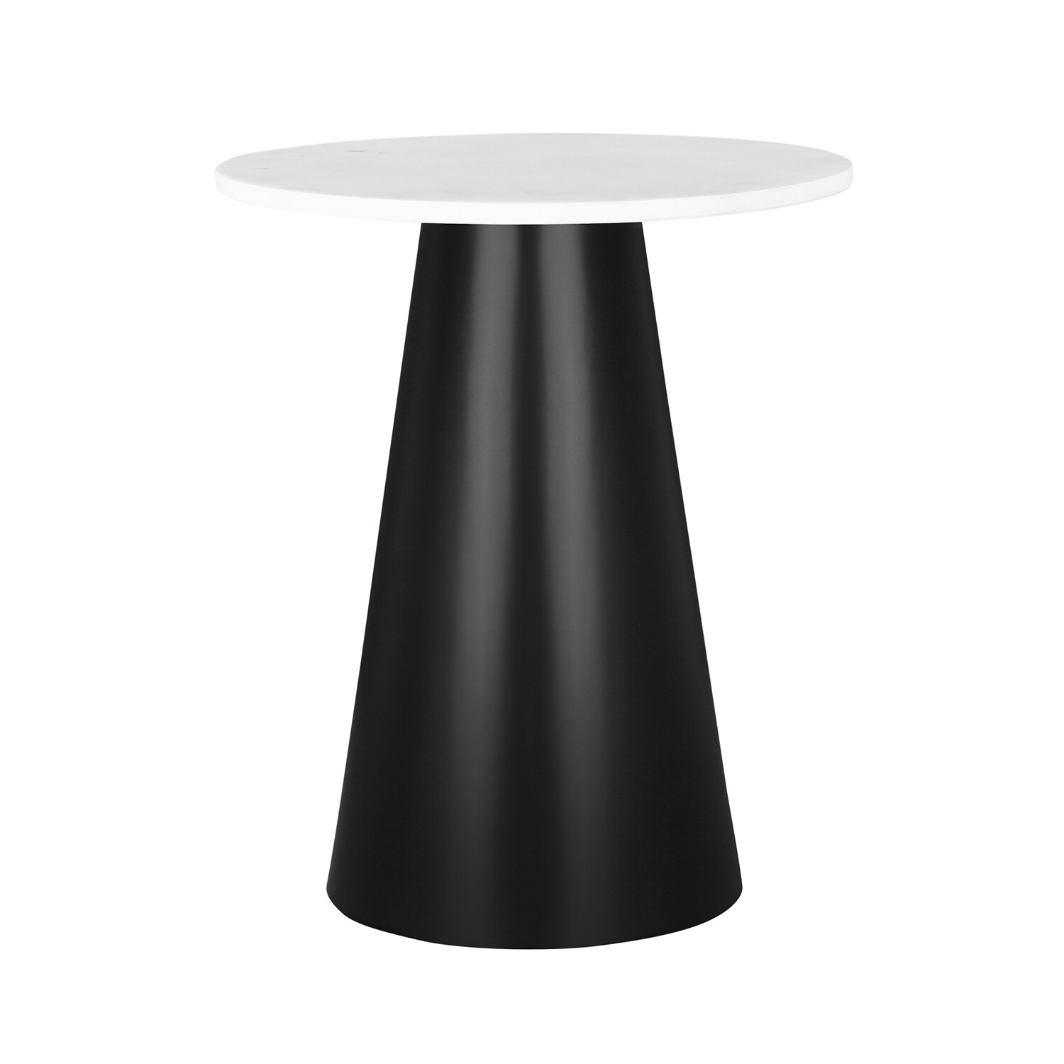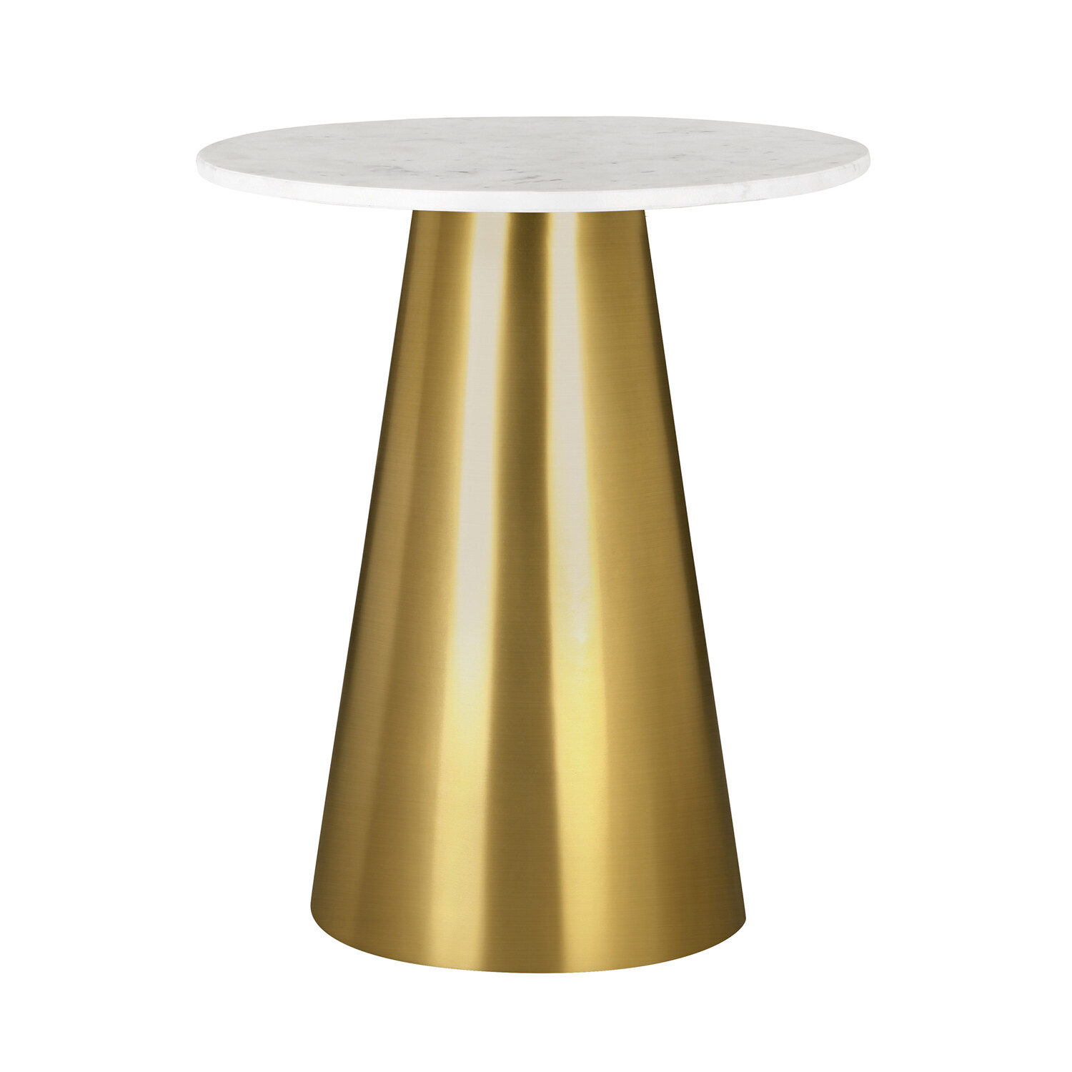 Ensure that essential items are within easy reach with this stylish contemporary side table crafted with an elegant natural marble stone and conical matte metal pedestal base. The easy-to-clean finish provides trendy convenience to any home decor. This modern and glam nightstand is not just for decorative purposes, but is also an essential extension to your sofa, bed, or armchair as a convenient spot for personal and essential items such as eyeglasses, medicines, or table lamps. Rich and minimalist color tones blend harmoniously with any existing home design.