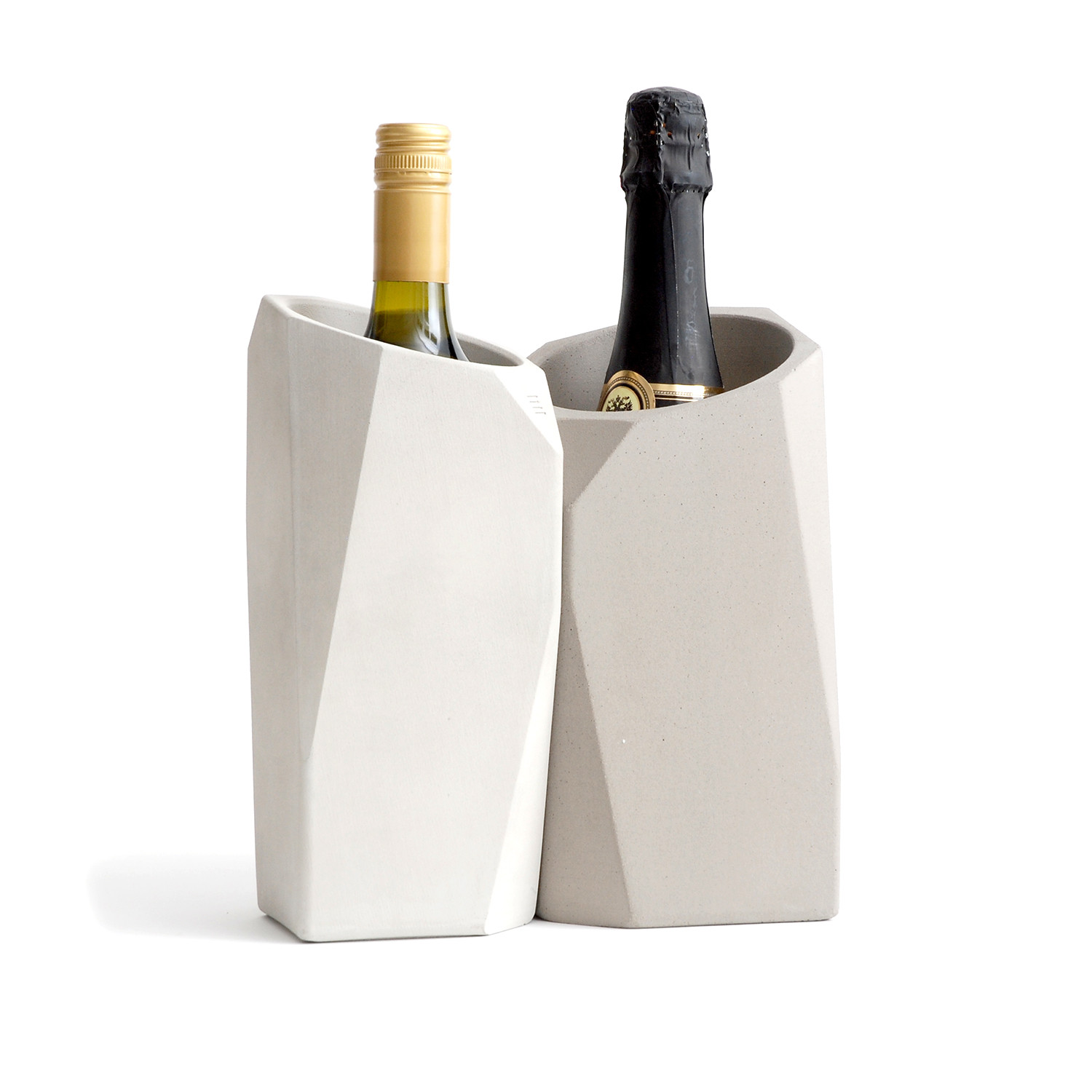 The Corvi Champagne Cooler builds on the reputation of the Corvi Wine Cooler with a size and mass designed specifically for the needs of Champagne. The larger size accommodates champagne bottles, while the even heavier mass is designed to better preserve the lower serving temperatures of champagne. Just like it’s predecessor, it’s crafted from real concrete using an advanced casting method that conveys strength in a slender profile. Individual coolers can even be stacked in an infinite array of designs.