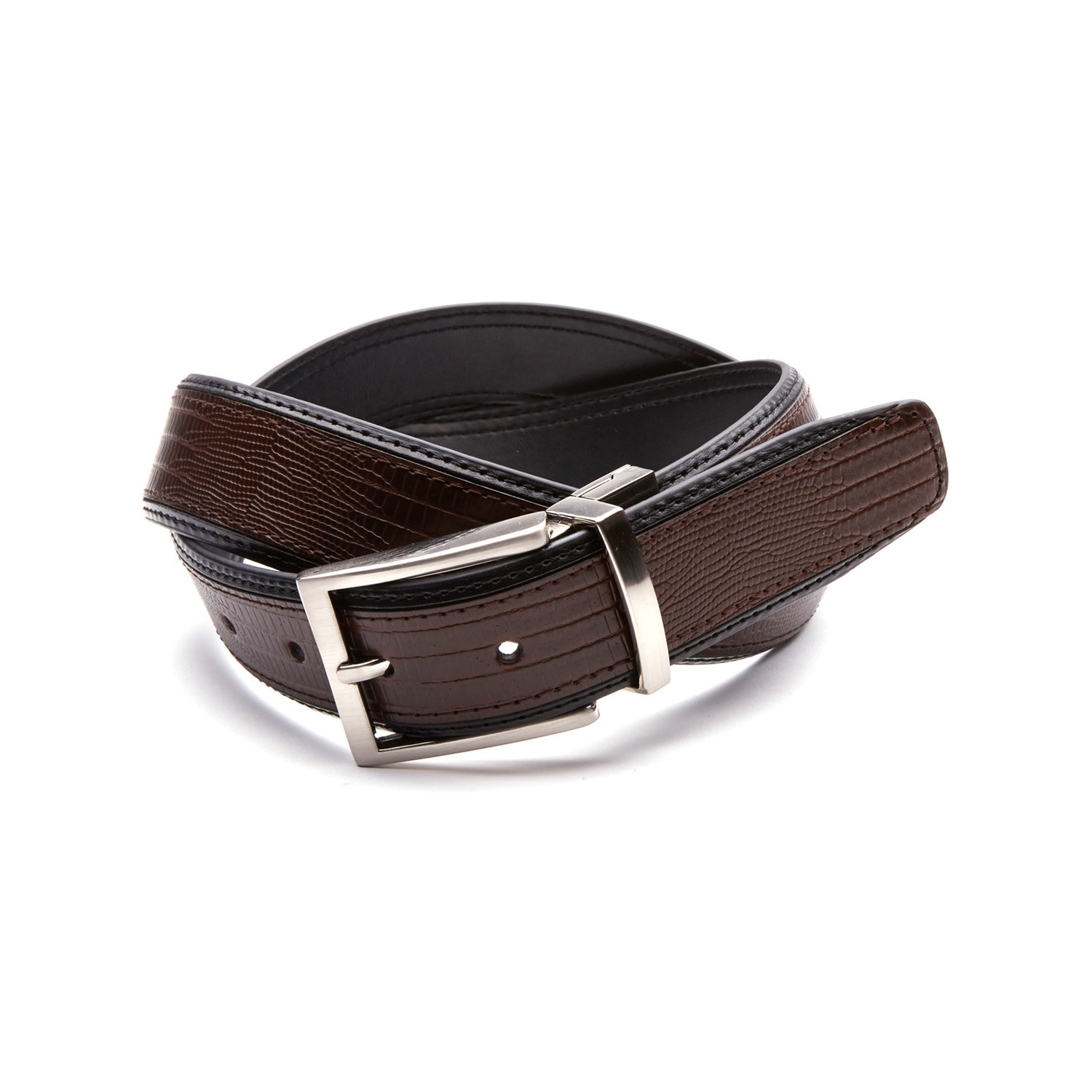 Reversible Lizard Inlay Genuine Leather Belt // Brown + Black