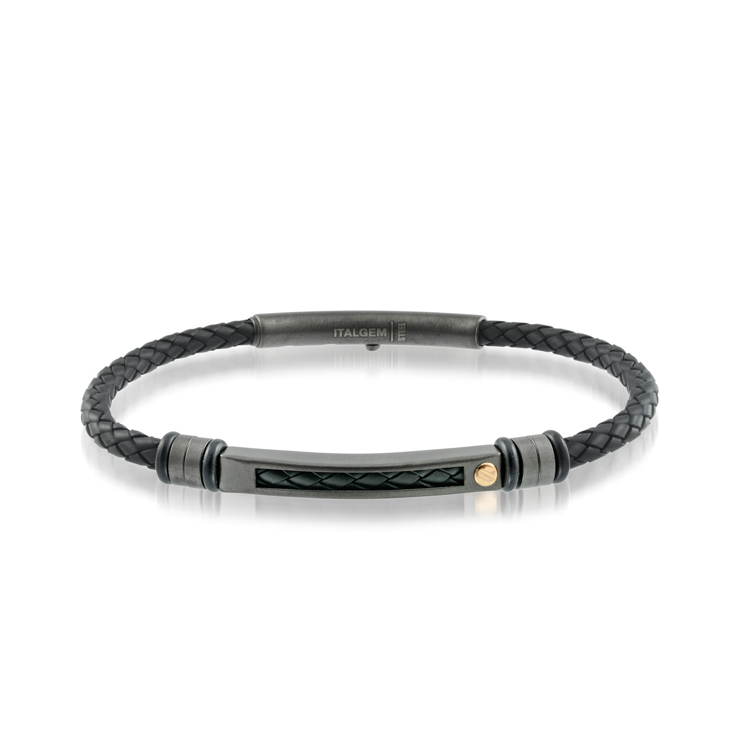 This Black Braided Rubber Bracelet // 1 bracelet features an 18k gold accent for a clean and contemporary look. Pair it with a suit or wear it casually — it lends elegance to any outfit.