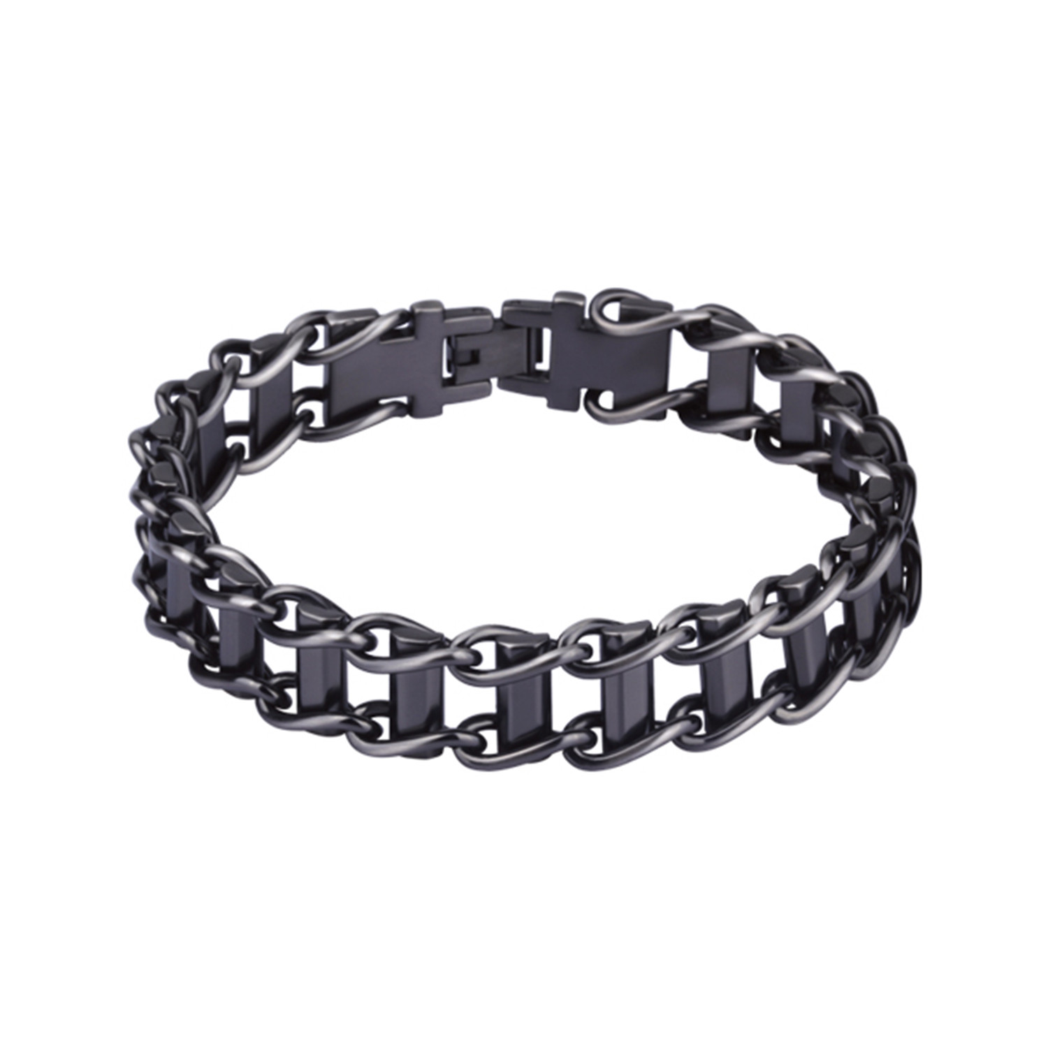 This Gun Metal Stainless Steel Bike Link Bracelet bracelet features a matte bike link for a clean and contemporary look. Pair it with a suit or wear it casually — it lends elegance to any outfit.