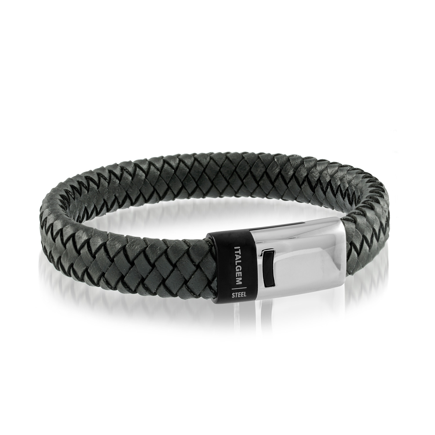 This Thick Black Braided Bracelet with Stainless Steel Clasp bracelet features genuine leather for a clean and contemporary look. Pair it with a suit or wear it casually — it lends elegance to any outfit.