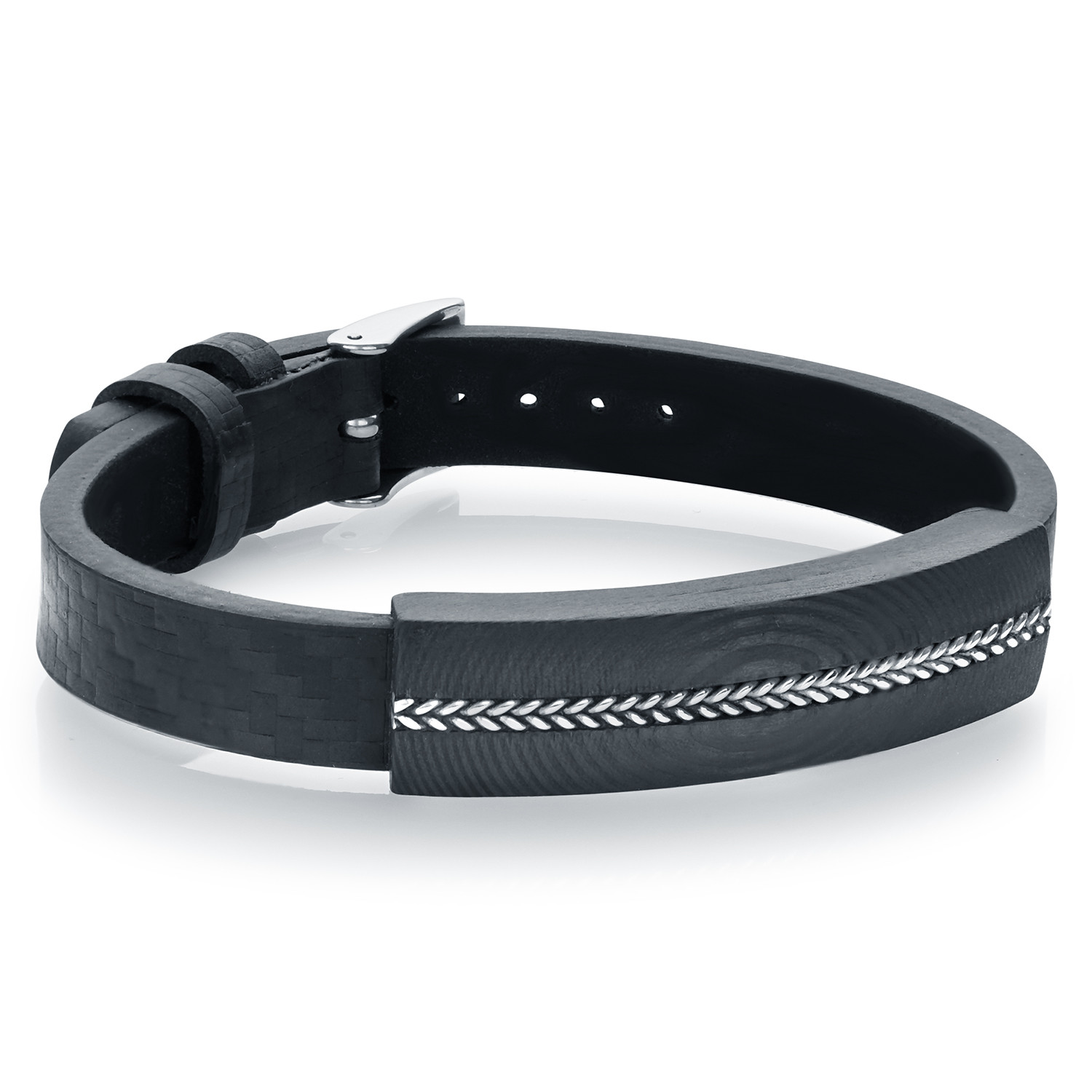 Steel Wire + Carbon Fiber Center Place Adjustable Leather Bracelet // Black + Silver