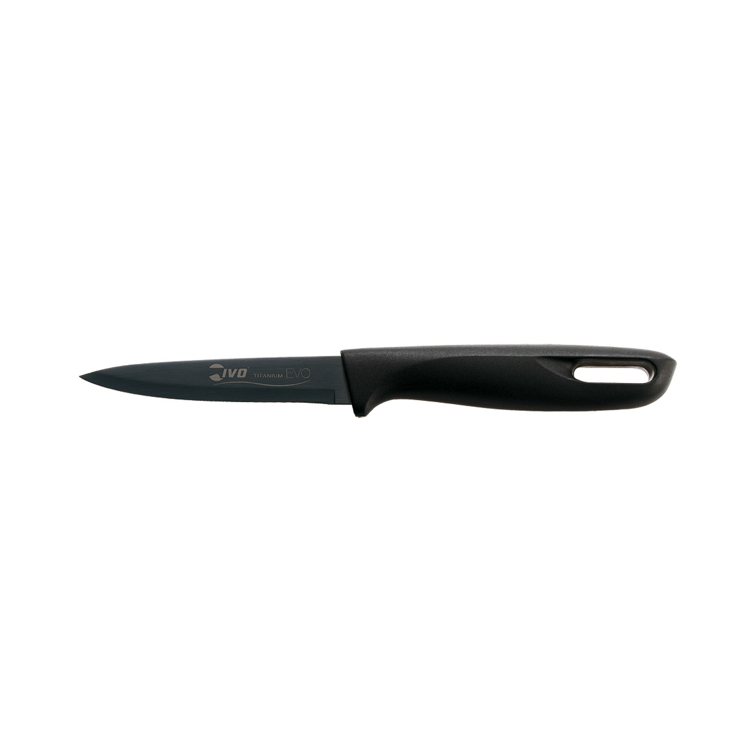 Made from Titanium coated, high carbon, special alloyed, surgical German stainless steel, this Paring Knife has the quality of a high-end kitchen knife with an exterior of incredible titanium. Titanium is antibacterial and non-allergenic and will never rust. It's also resistant to breaking, cracking or chipping under impact, stress or high/low temperatures. You'll love its gleamingly beautiful all-black look.