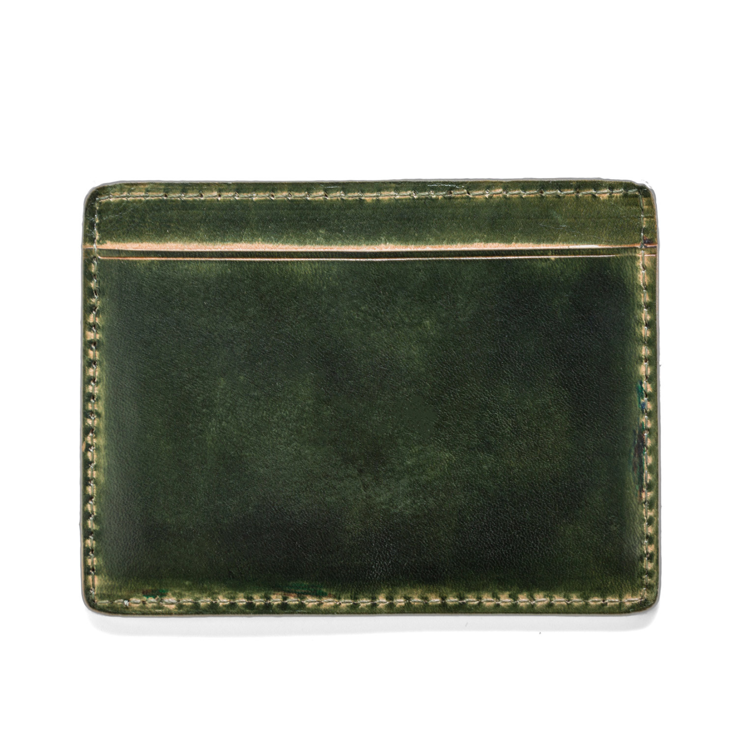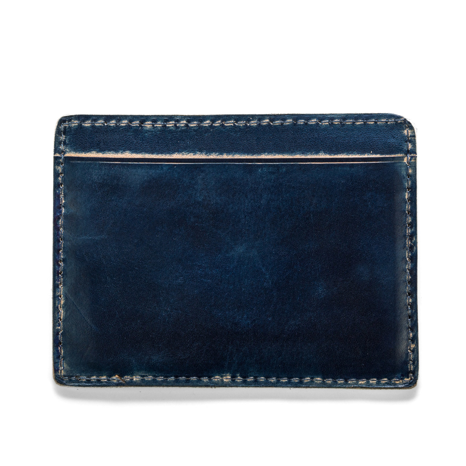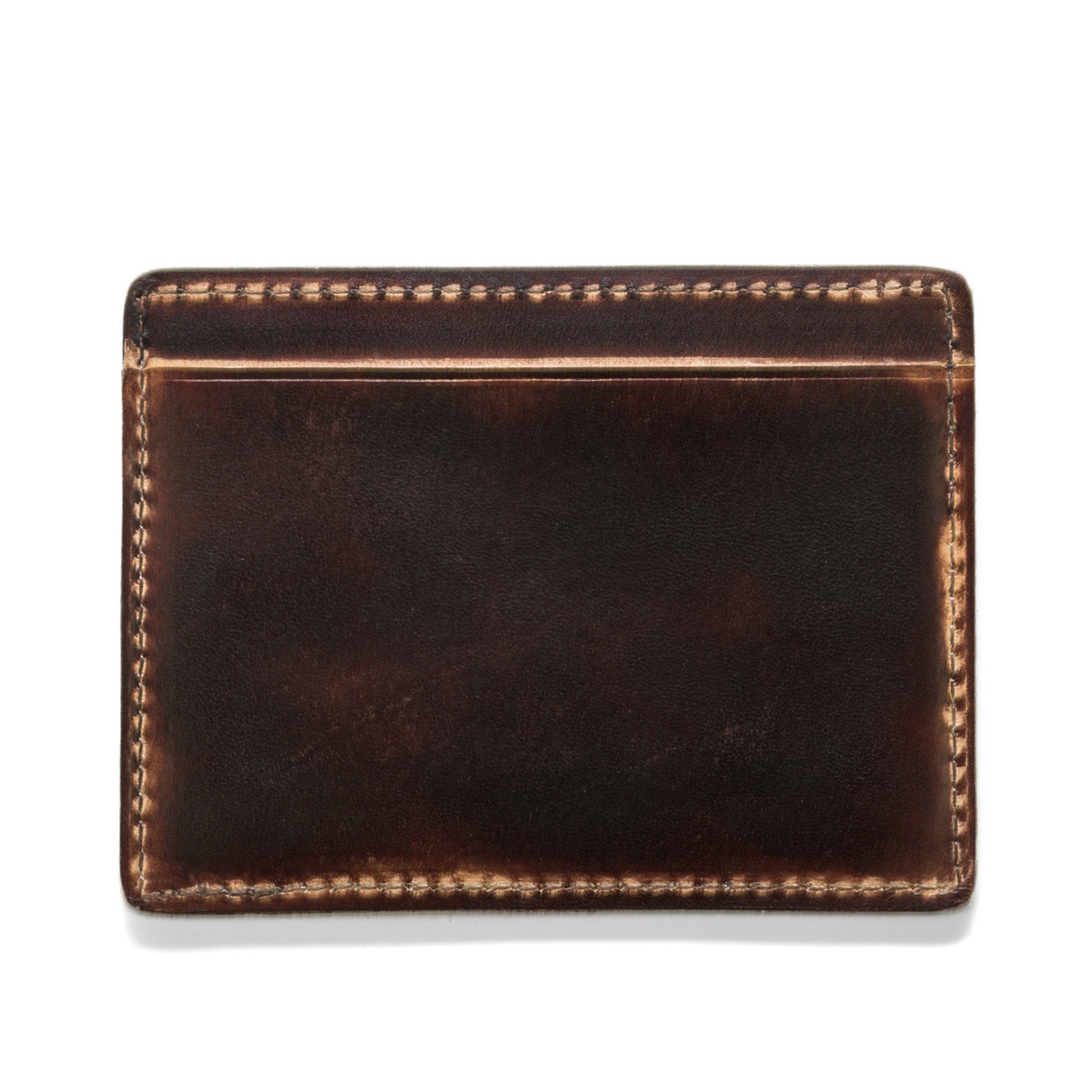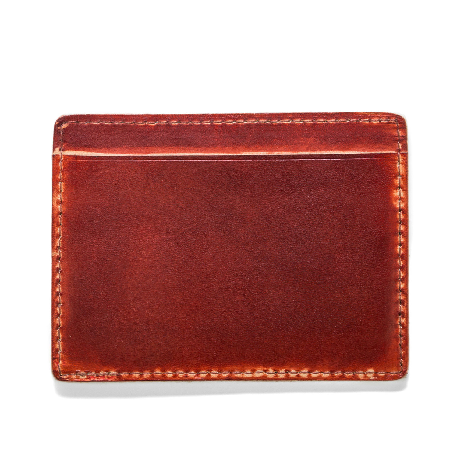 The Hand Stained Card Carrier is a 100% genuine hand cut leather and features four card slots and signature J. Fold logo. The hand-stained look is totally unique and ages beautifully.