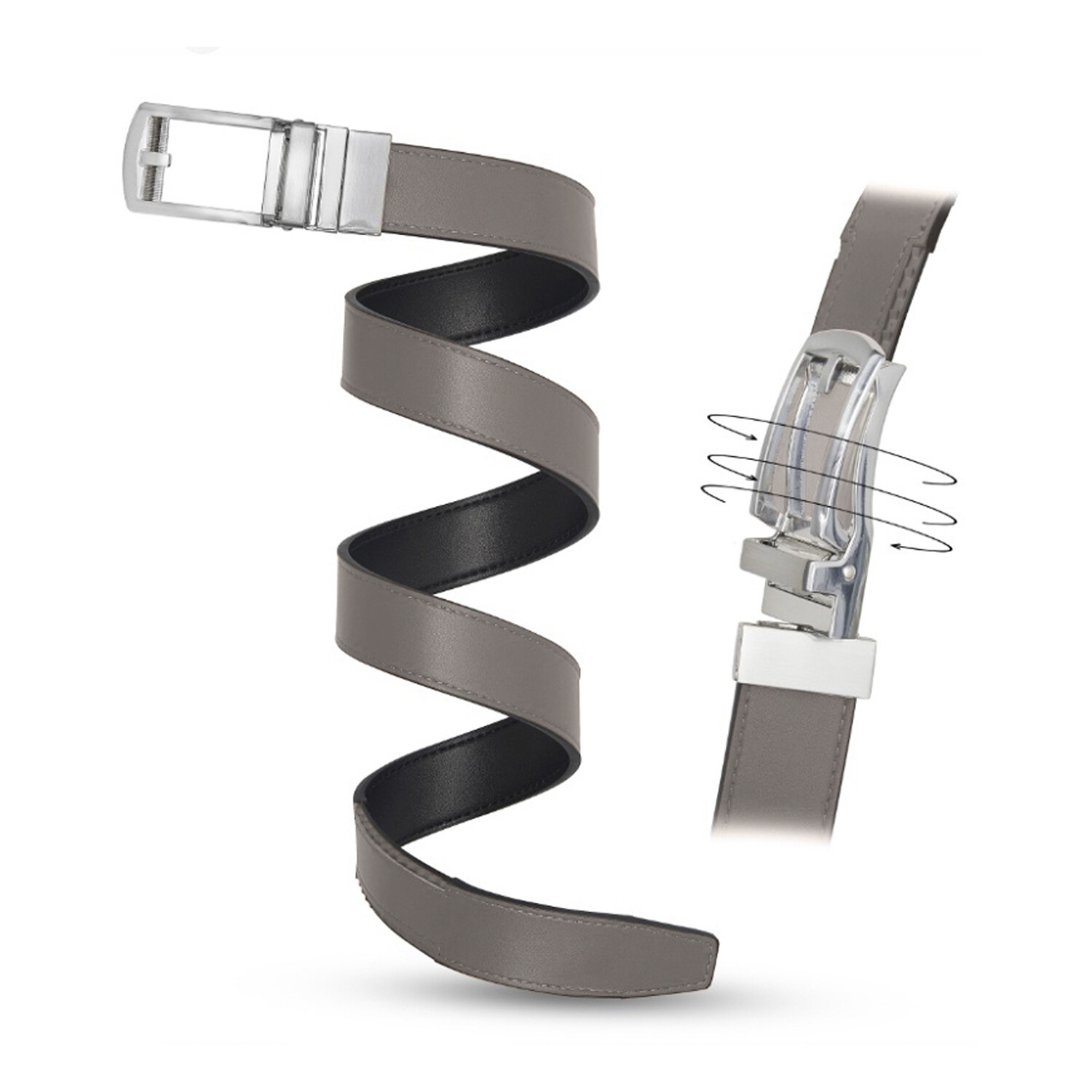 Patented Reversible Ratchet Belt with Silver Buckle // Gray + Black