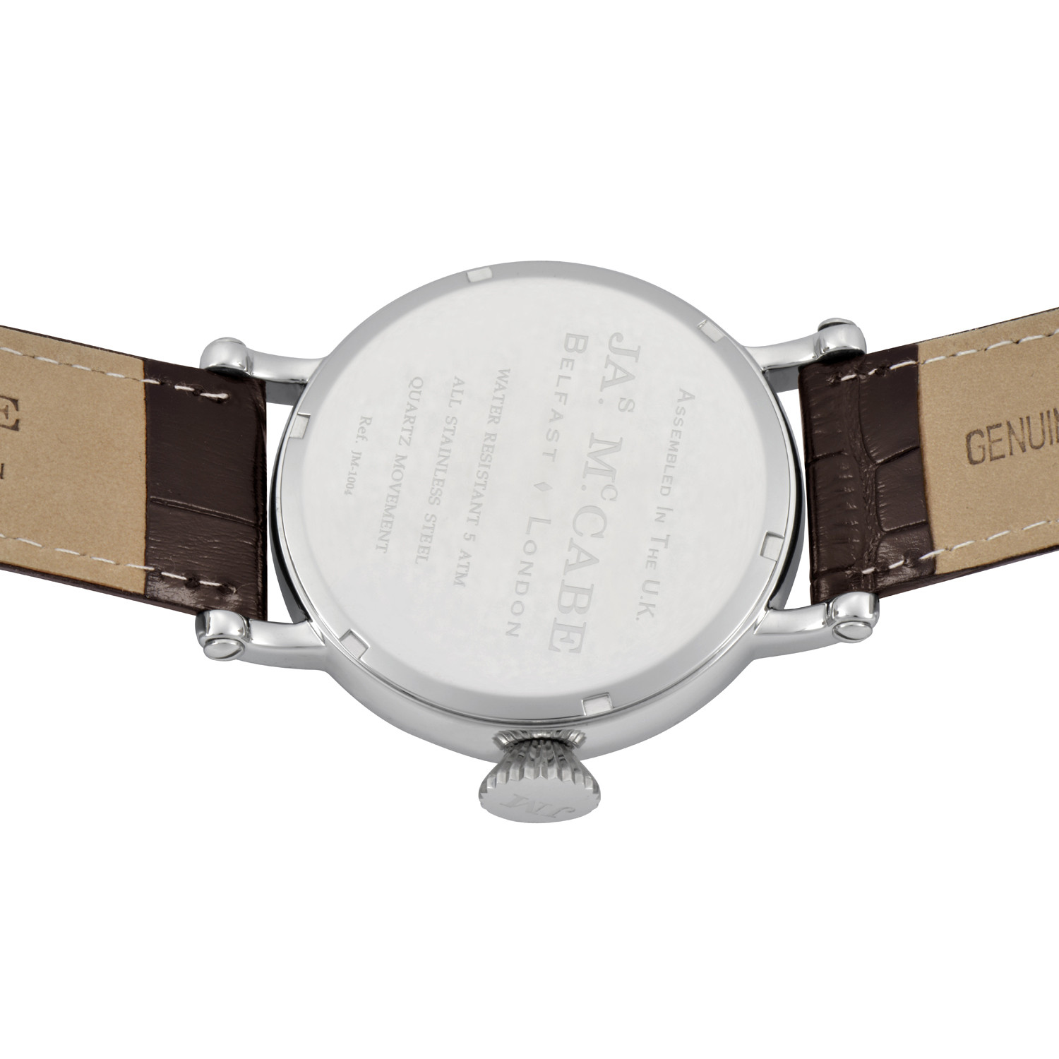 Lurgan is the birthplace of James McCabe, one of the foremost watchmakers of his generation. His precision craftsmanship has stood the test of time for generations. Assembled by hand in the UK, pieces like The Lurgan Watch reflect the historical connection that modern timepieces have with the McCabe name. Supreme craftsmanship, elegant styling, precision movements, and classic durability... The Lurgan allows the wearer a chance to connect with a piece of history when telling the time, to a time when watchmaking underwent a major revolution.