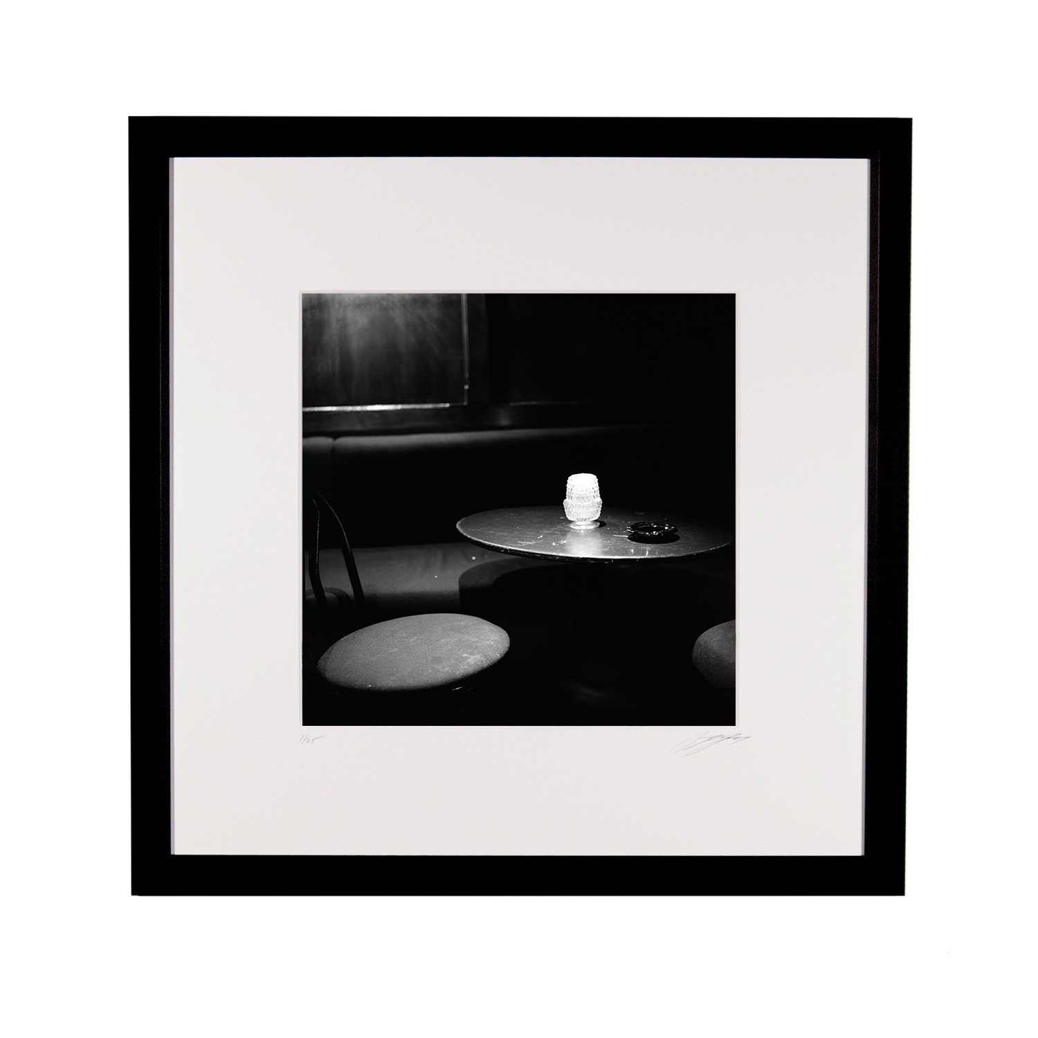 Lounge Study I has rich, ambient lighting and a mysterious narrative. Where is this perch? Who was sitting here, enjoying an evening drink? This piece is framed for intrigue in your space.