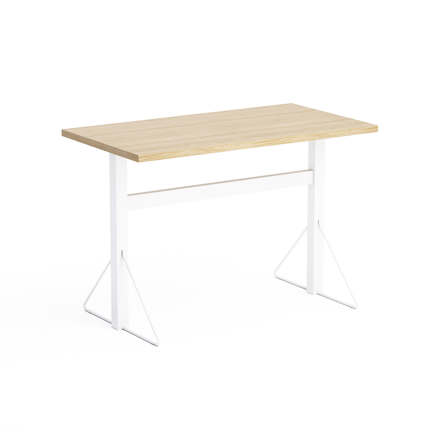Enhance your workspace with architectural details with the Carnegie Benching Desk that almost looks too chic to be part of the home office. Designed to be streamlined yet with a dose of industrial edge, you'll be inspired to be creative and productive as you work in style. The double "bench" style is modular and can be configured in the middle of the room as a double desk or against the wall as a single desk or work bench. The airy silhouette doesn't overpower the room while the wood veneer top adds a more relaxed feel. Sturdy steel legs and frame and easy to clean surfaces make this an ideal home office piece.