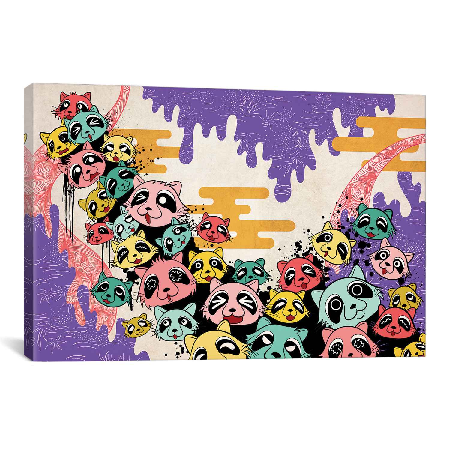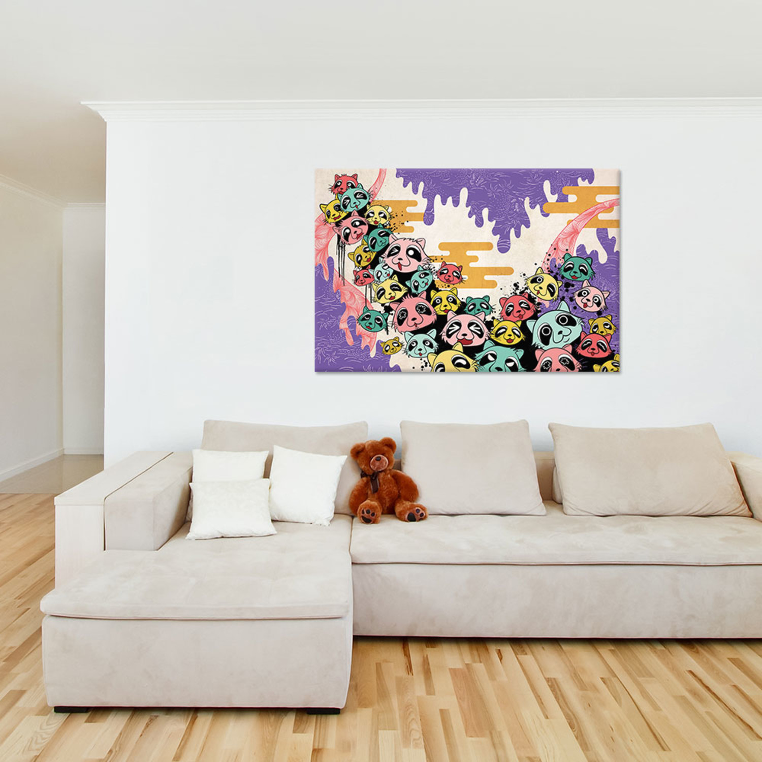 Inspired by Japanese art, classical cinema, and retro aesthetics, this beautiful canvas print is meant to bring history, and a cross-pollination of the most famous styles and genres to your favorite space. The recognizable figures and vivid blend of colors practically pulse with energy and motion, invoking pleasure and imagination to every eye.