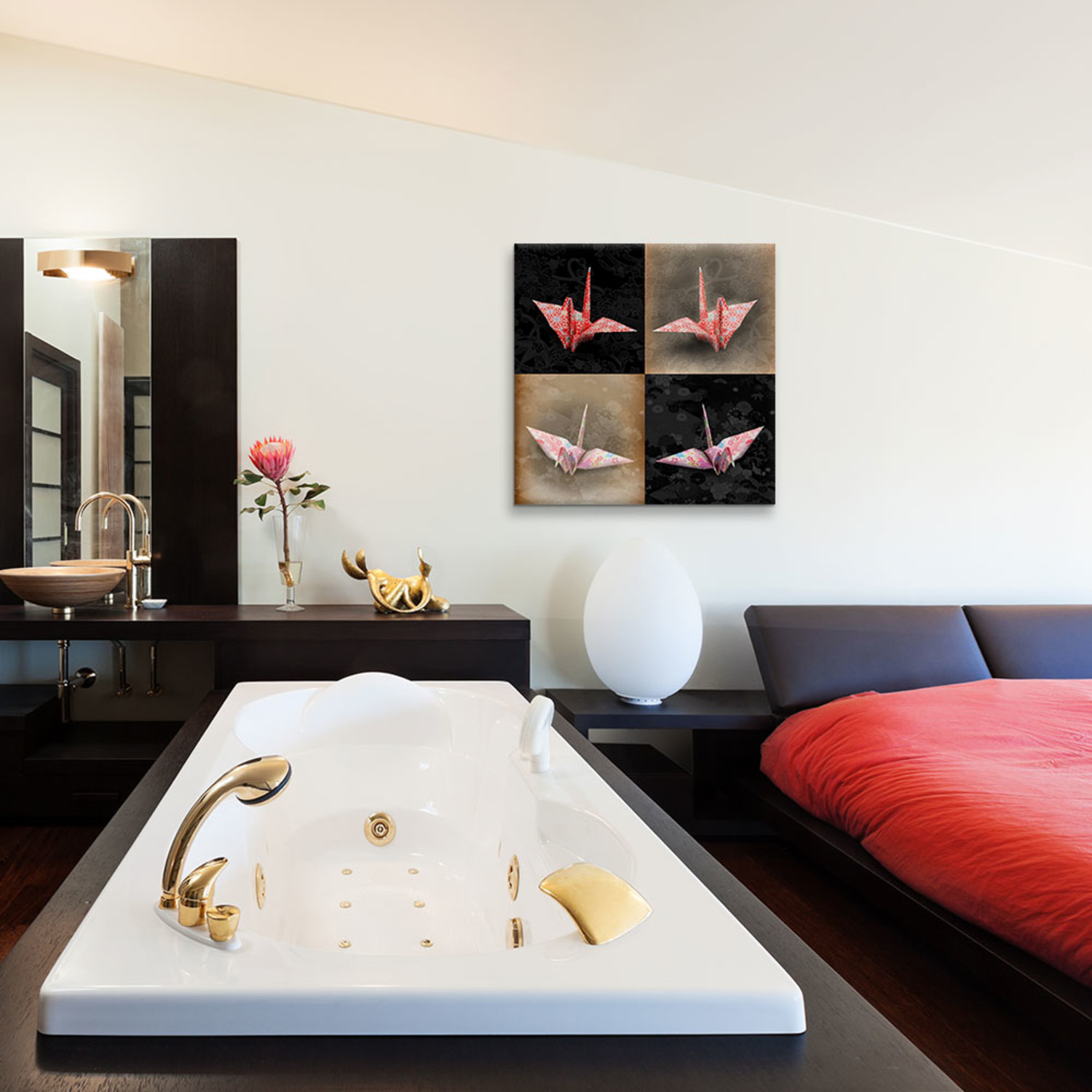 Inspired by Japanese art, classical cinema, and retro aesthetics, this beautiful canvas print is meant to bring history, and a cross-pollination of the most famous styles and genres to your favorite space. The recognizable figures and vivid blend of colors practically pulse with energy and motion, invoking pleasure and imagination to every eye.