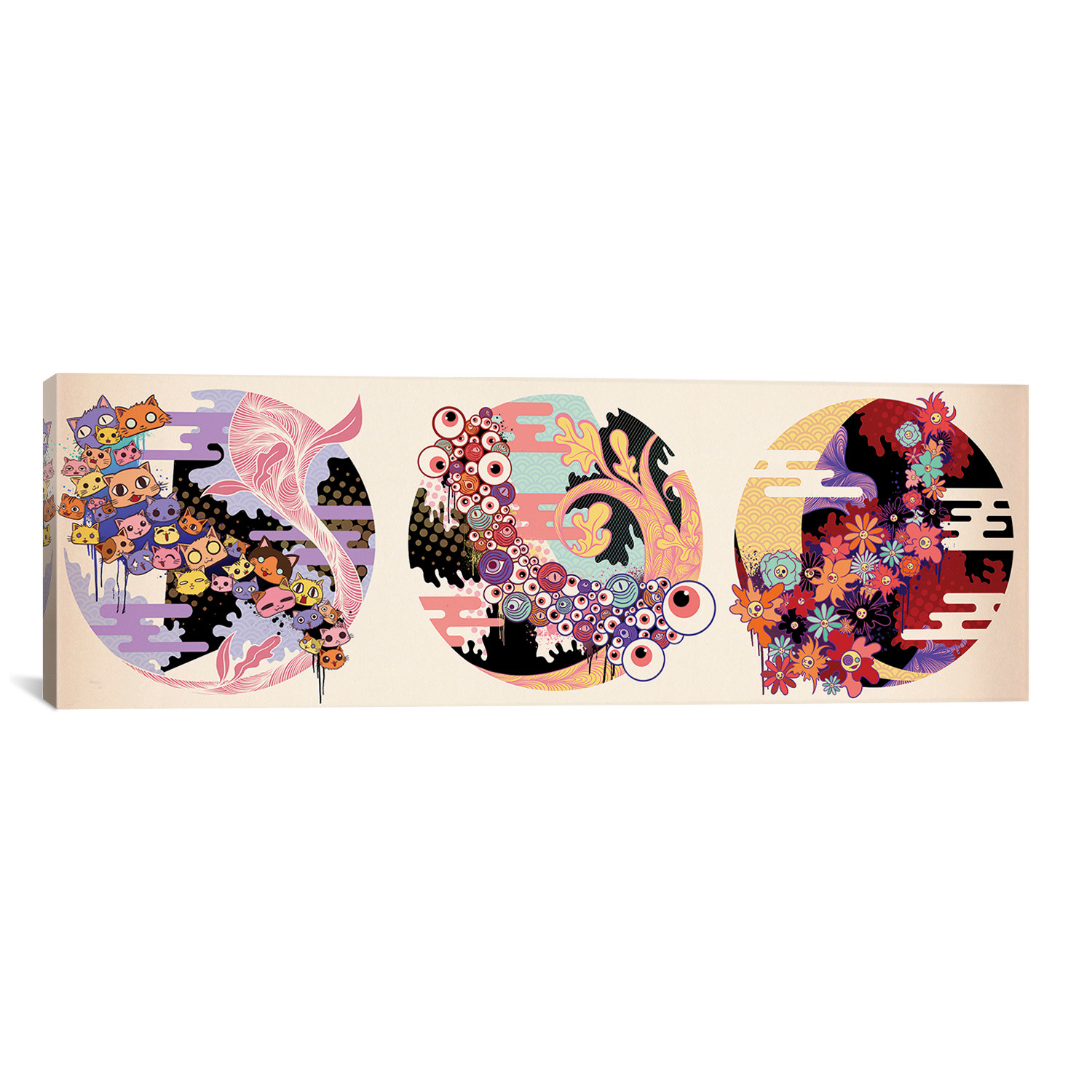 Inspired by Japanese art, classical cinema, and retro aesthetics, this beautiful canvas print is meant to bring history, and a cross-pollination of the most famous styles and genres to your favorite space. The recognizable figures and vivid blend of colors practically pulse with energy and motion, invoking pleasure and imagination to every eye.