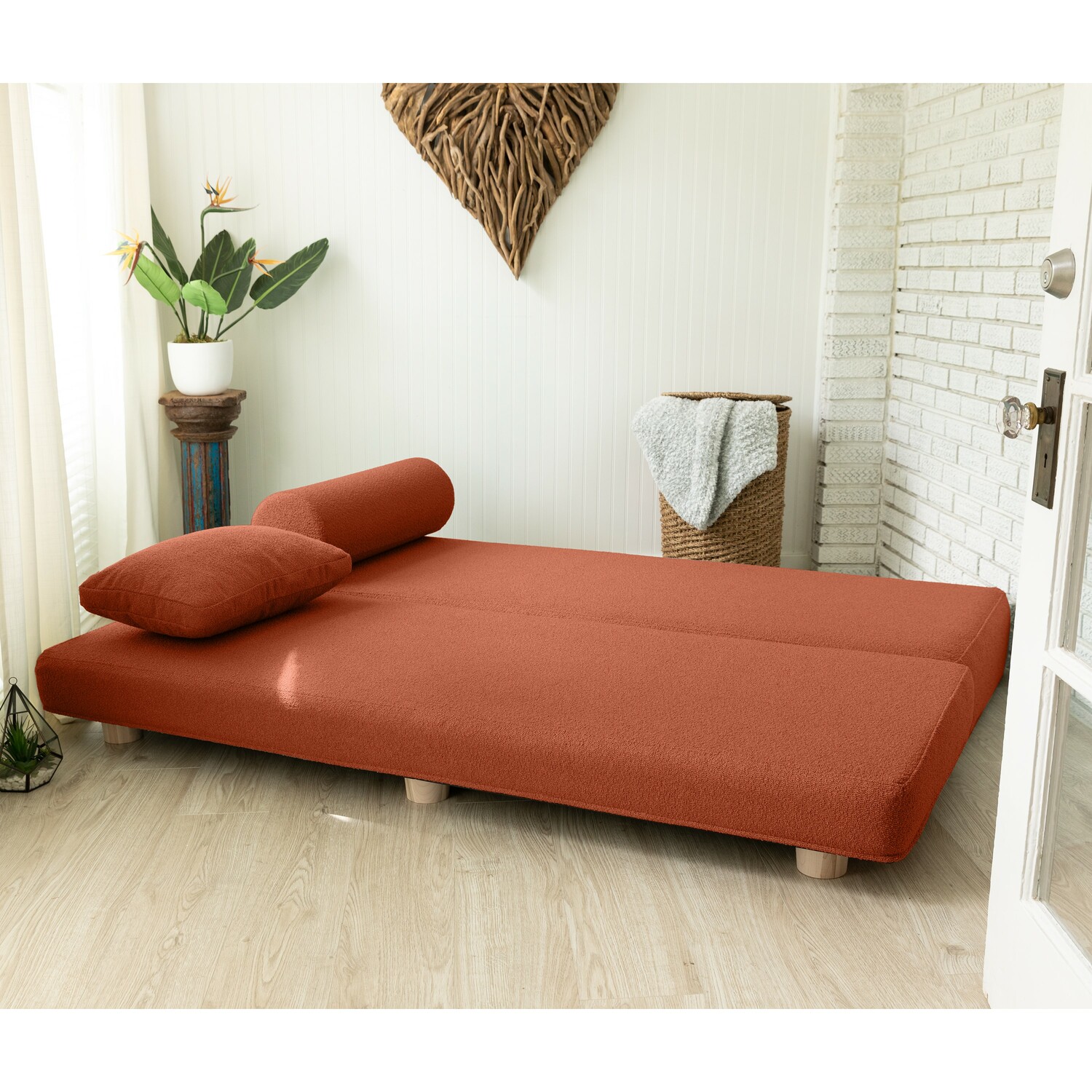 The Jaxx Avida Daybed is the ultimate in relaxation and style. Crafted from multilayer high density furniture-grade foam and covered in premium Boucle fabric, this daybed provides a soft and inviting surface that's perfect for lounging and relaxing. Its neutral color scheme and clean lines make it a versatile addition to any home decor style. But the Jaxx Avida Daybed is more than just a comfortable place to relax—it also transforms into 2 twin beds or 1 queen bed for overnight guests. Simply lift the top platform of the daybed and place the platforms side by side to form a luxurious queen size sleeper. It provides the support you need for a comfortable and restful night's sleep, while its sleek design adds a touch of modern elegance to your space.