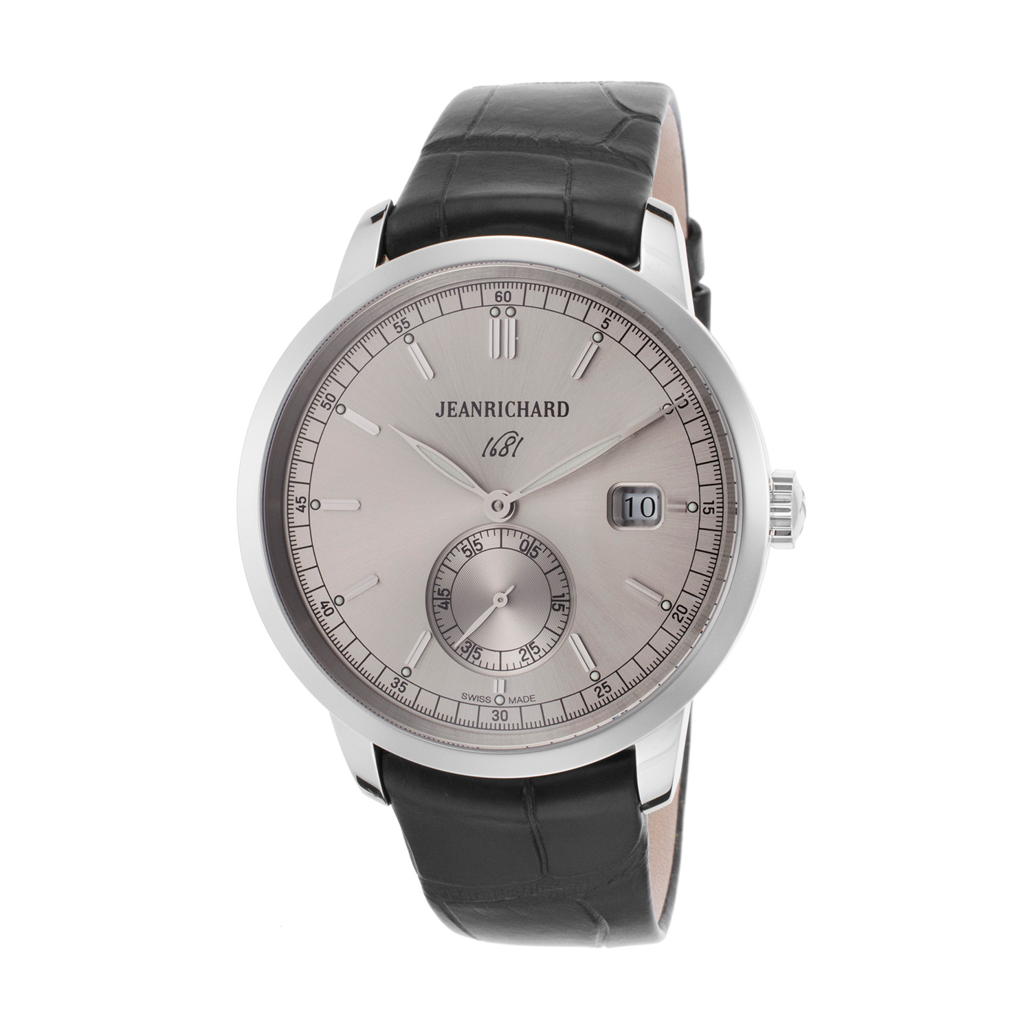 This 1681 Automatic watch, with its Jean Richard manufacture movement, cones in a silver-tone stainless steel case atop a genuine alligator strap. The gorgeous silver-tone dial gives greater prominence to the reading of the time. It's an overall incredibly elegant timepiece, perfect for the man who communicates quality.