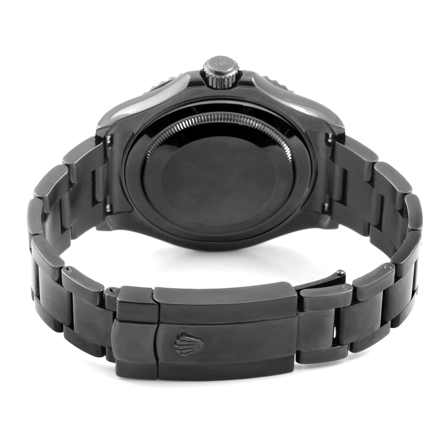 This Rolex has been carefully inspected, restored, and protected with an all-black PVD coating. The process involves completely disassembling the watch and placing it in a vacuum chamber to be blasted with a DLC (Diamond-Like Carbon) coating.
