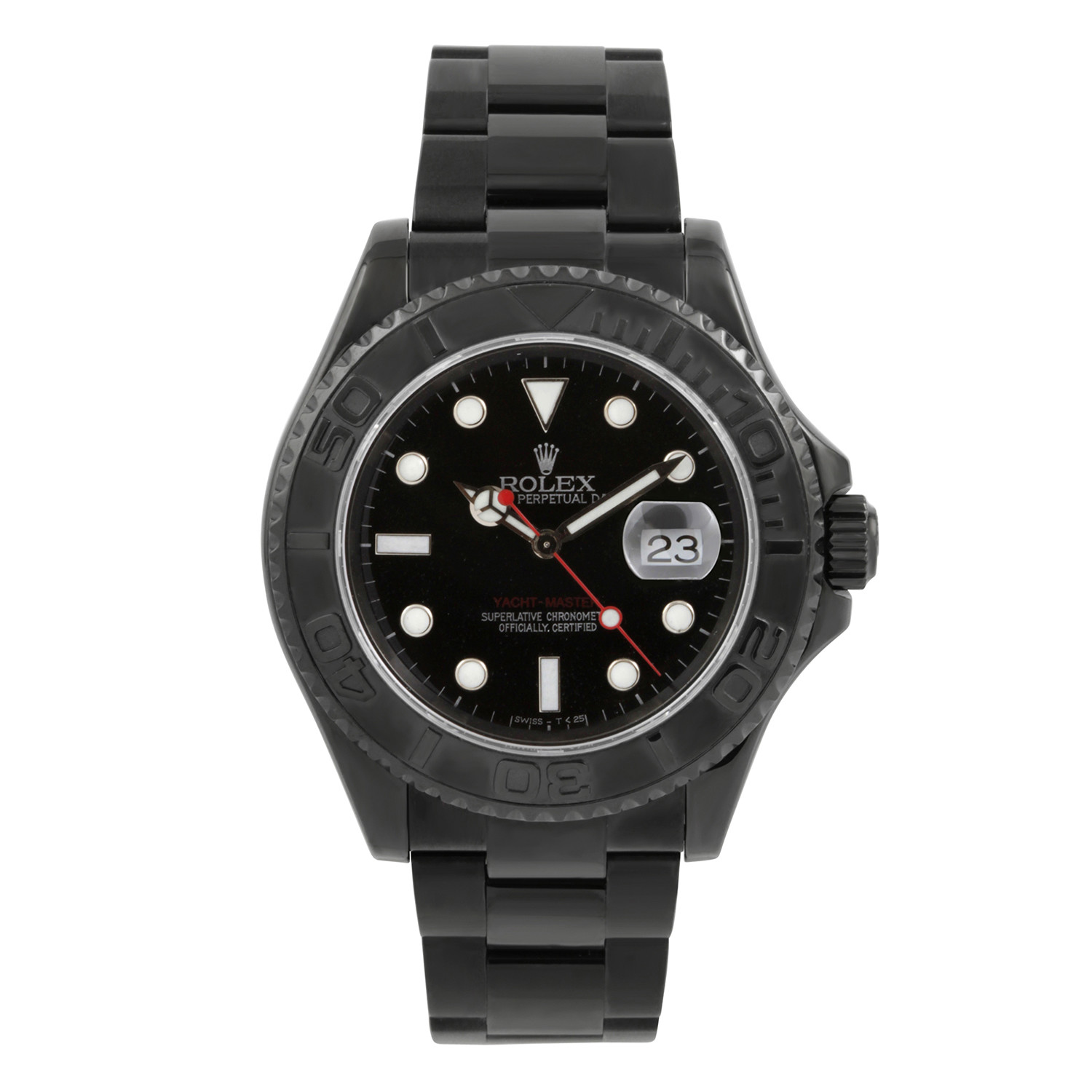 Searching for the perfect watch to adventure through life with? The pre-owned Rolex Yachtmaster is the perfect watch for life both on land and at sea. Originally developed to meet the needs of sailors around the world, the Rolex Yachtmaster comes complete with automatic winding technology and sapphire crystal. This particular Yachtmaster Rolex includes a stainless steel case with high quality aftermarket PVD coating. When you put this timeless classic on your wrist, you will never want to take it off!