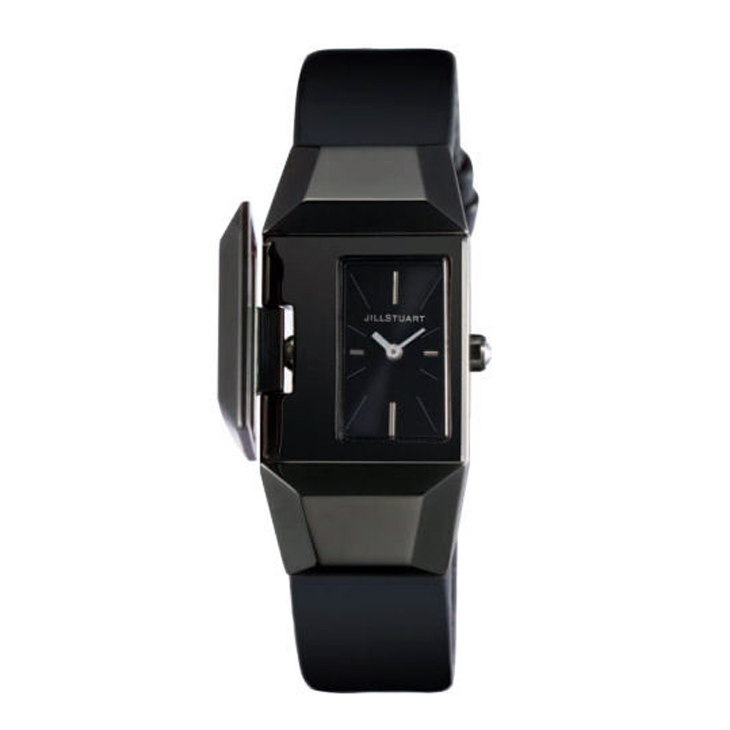 Jill Stuarts "locket watch" design is intended to reveal the time—purely when needed. With a clever clasp over the face, it both conceals and tells the time on demand, leaving a gem-like, geometric form on your wrist like a bracelet. The streamline look and design offers both a charming wrist accessory and quality time piece in one.