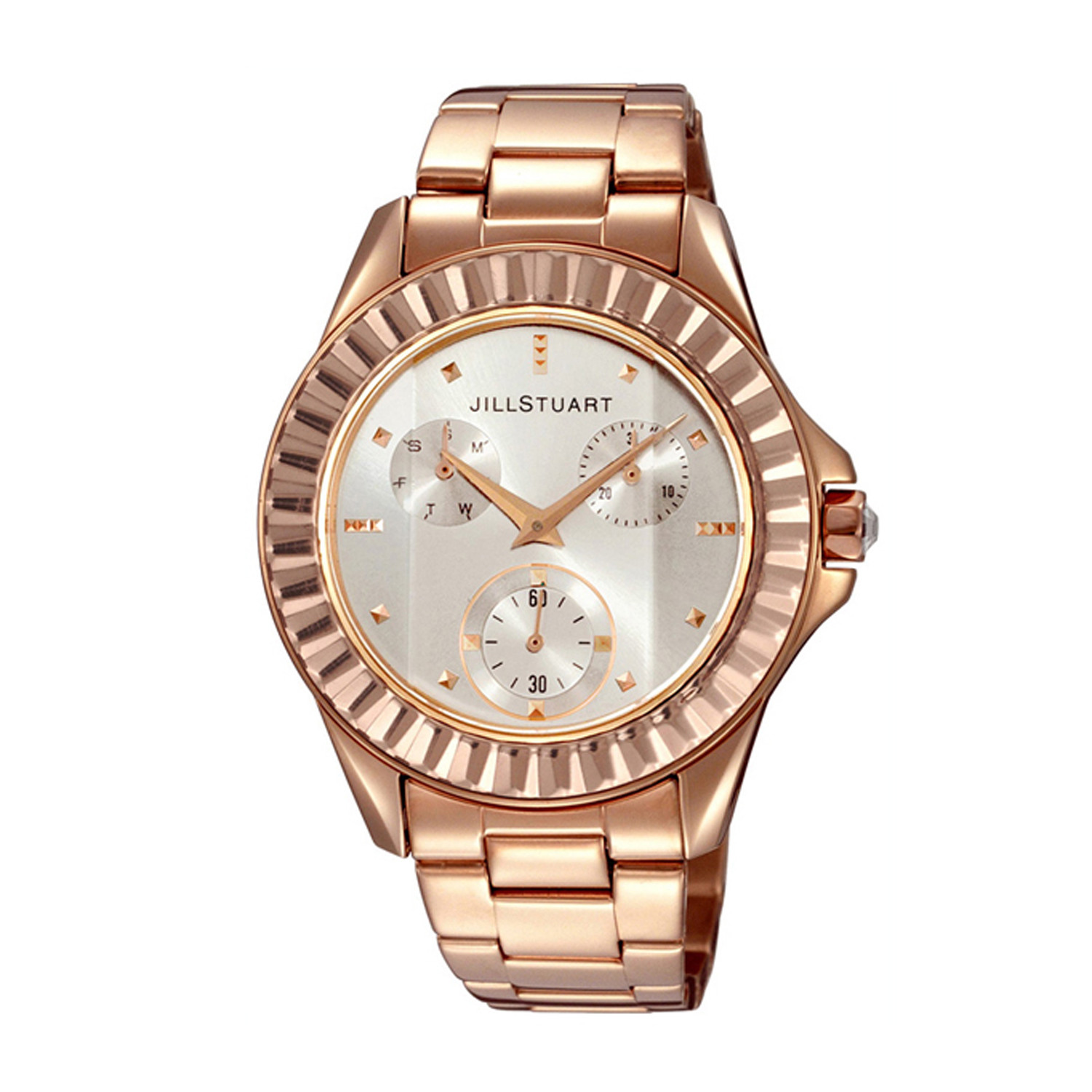— Rose gold metal band (17mm near case; 14mm near clasp)