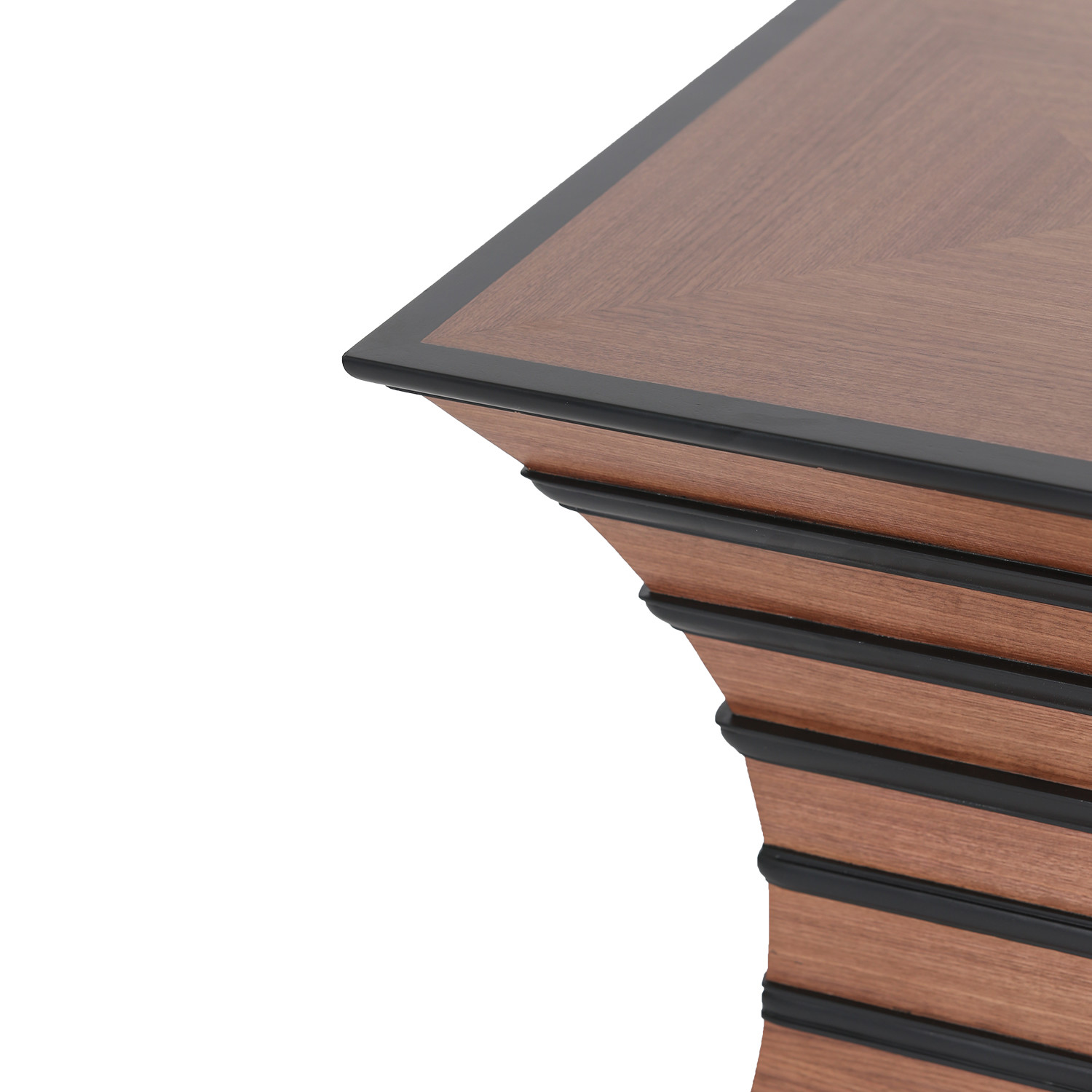 With a shapely concave silhouette and warm walnut finish, Beau is certainly classically inspired, however, with its striking horizontal ebony ribs, it is also unexpectedly modern-- a brilliant blend of then and now.