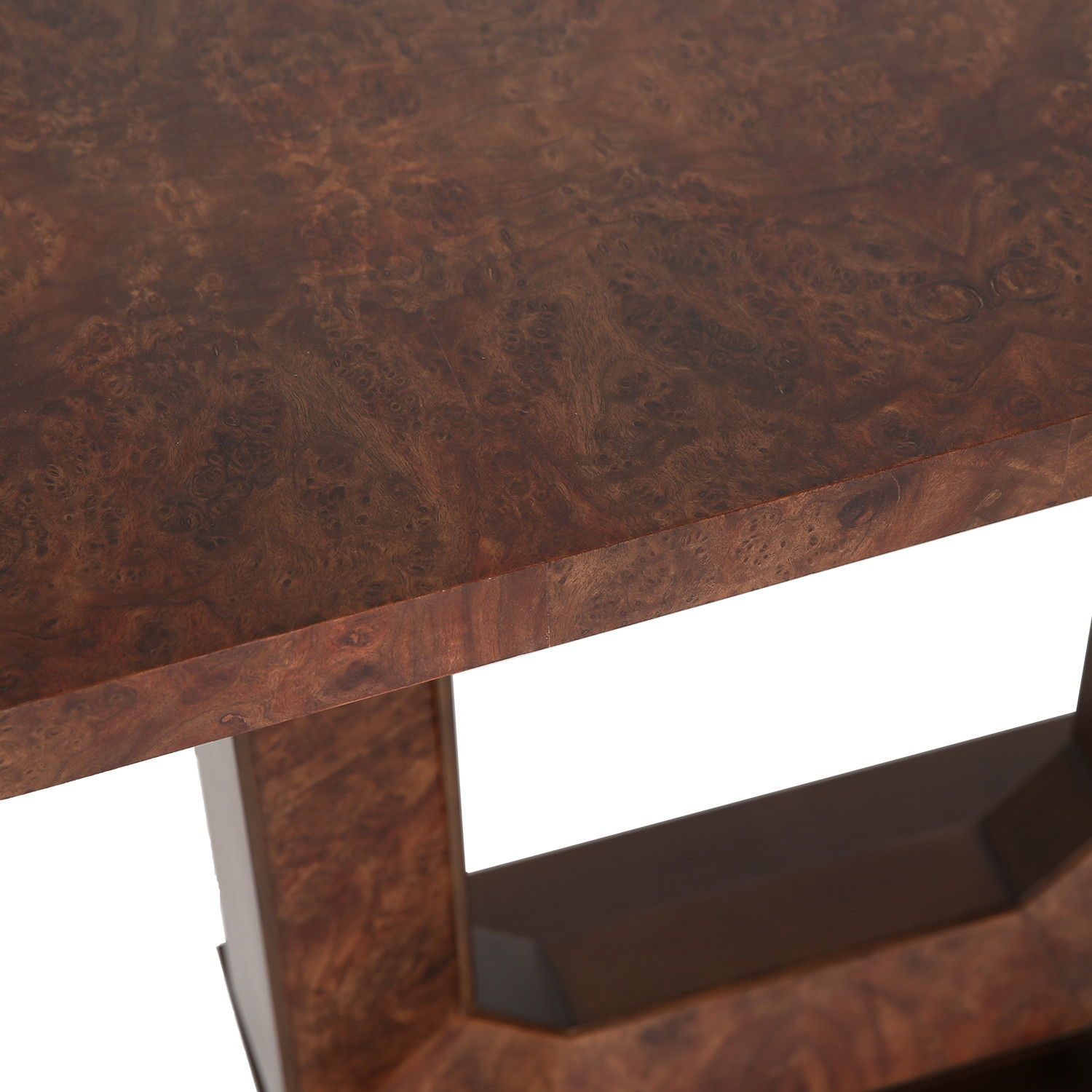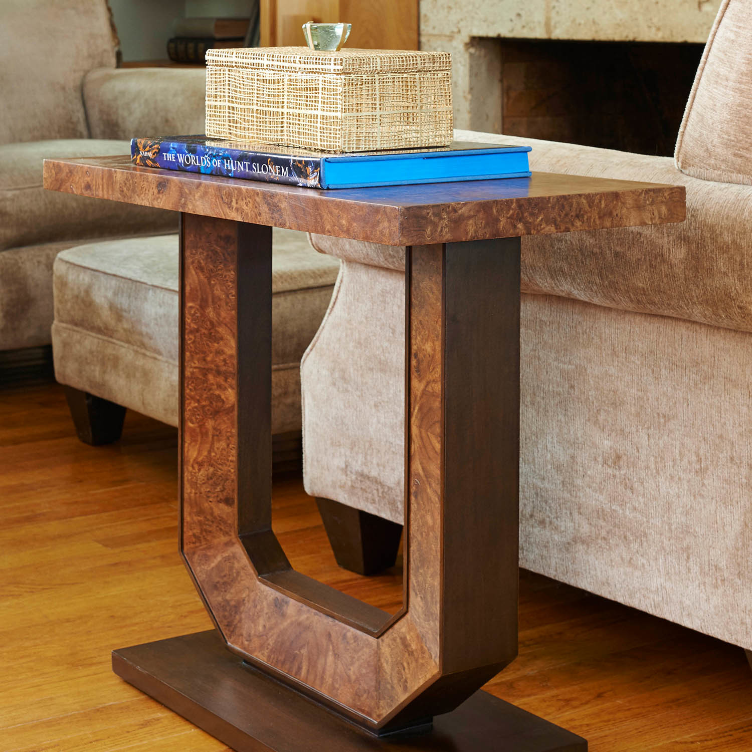 Clive is a modern interpretation of the classic lyre table. Its elegant yet edited attitude reflects the collection's penchant for simple and refined silhouettes. Created in rich walnut burl and solid wood.