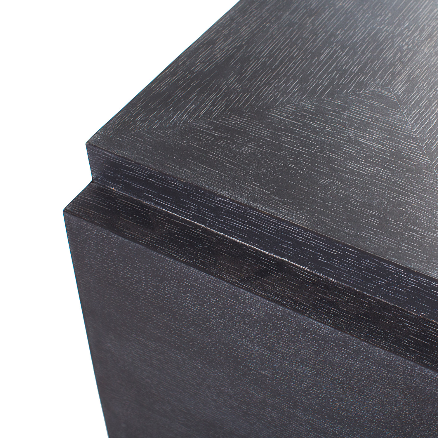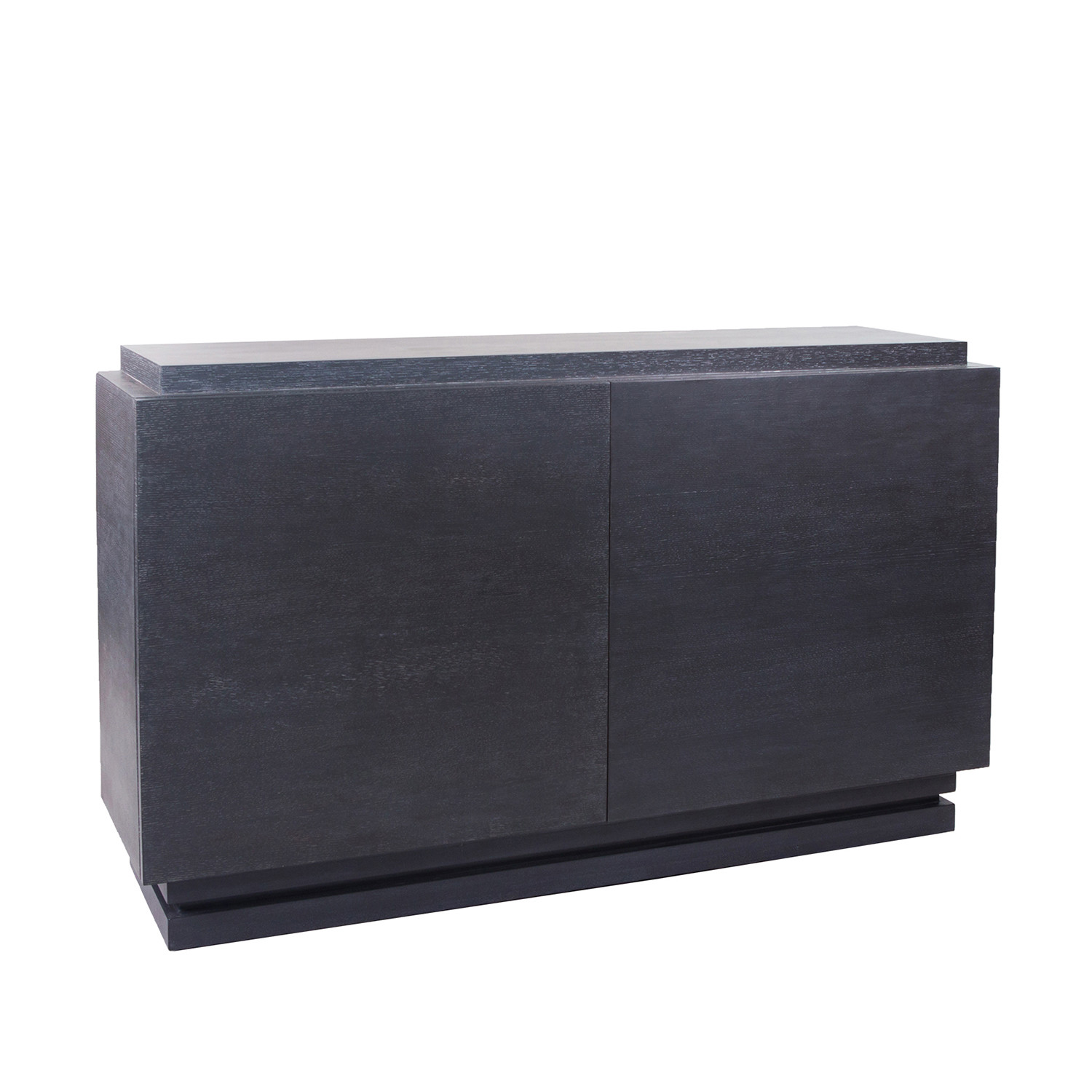 Dressed in quarter cut oak and finished in charcoal gray with white cerusing, the two door Gianni has an elegant confident air. With a recessed plinth base and square edge top surface, the multi-purpose cabinet is a timeless essential that can serve as a buffet, credenza or media cabinet.