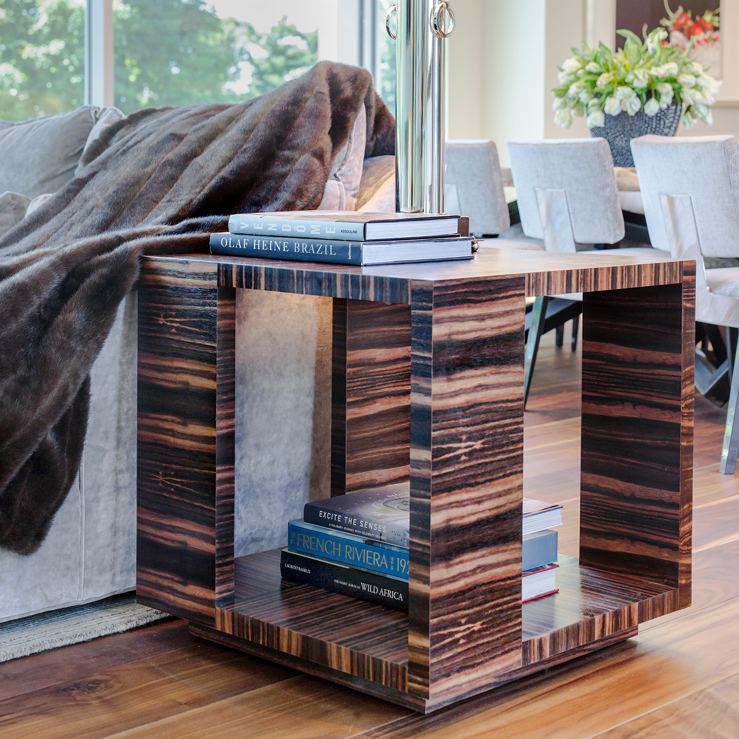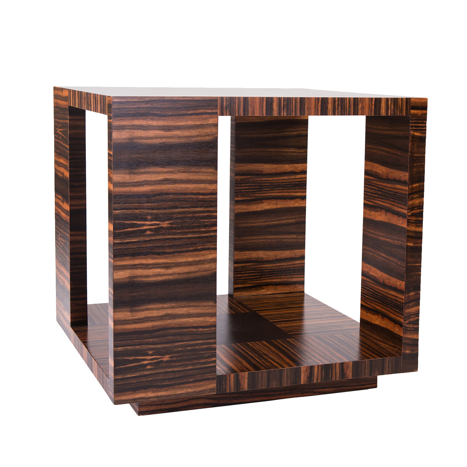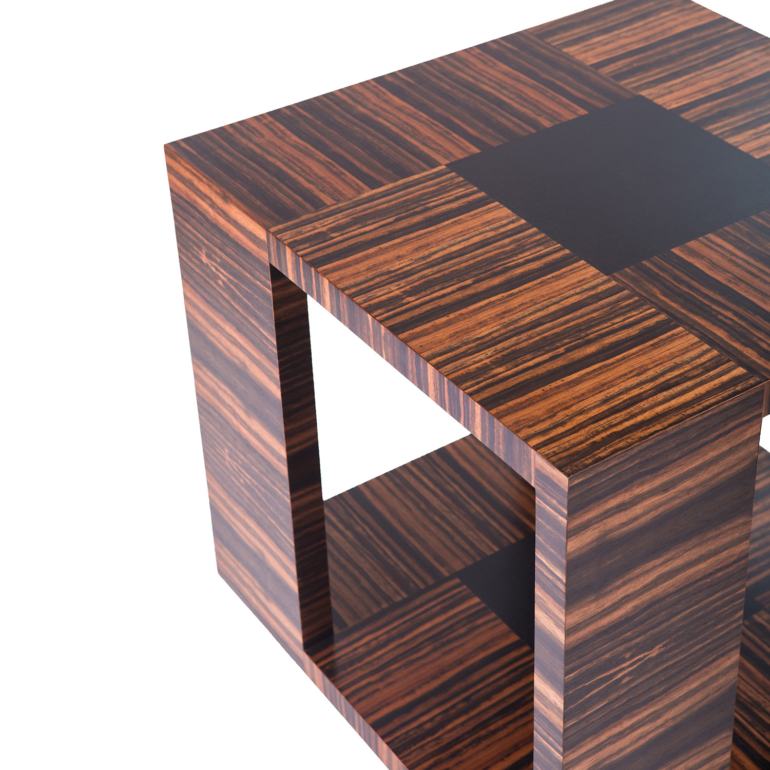 Hugo looks amazing from every angle. With open bands of ebony veneer, this is a versatile and stylish addition to an interior. The centers of both surfaces are accented by mitered black squares—a perfect example of the understated nuances found throughout this sophisticated collection of accent furniture.