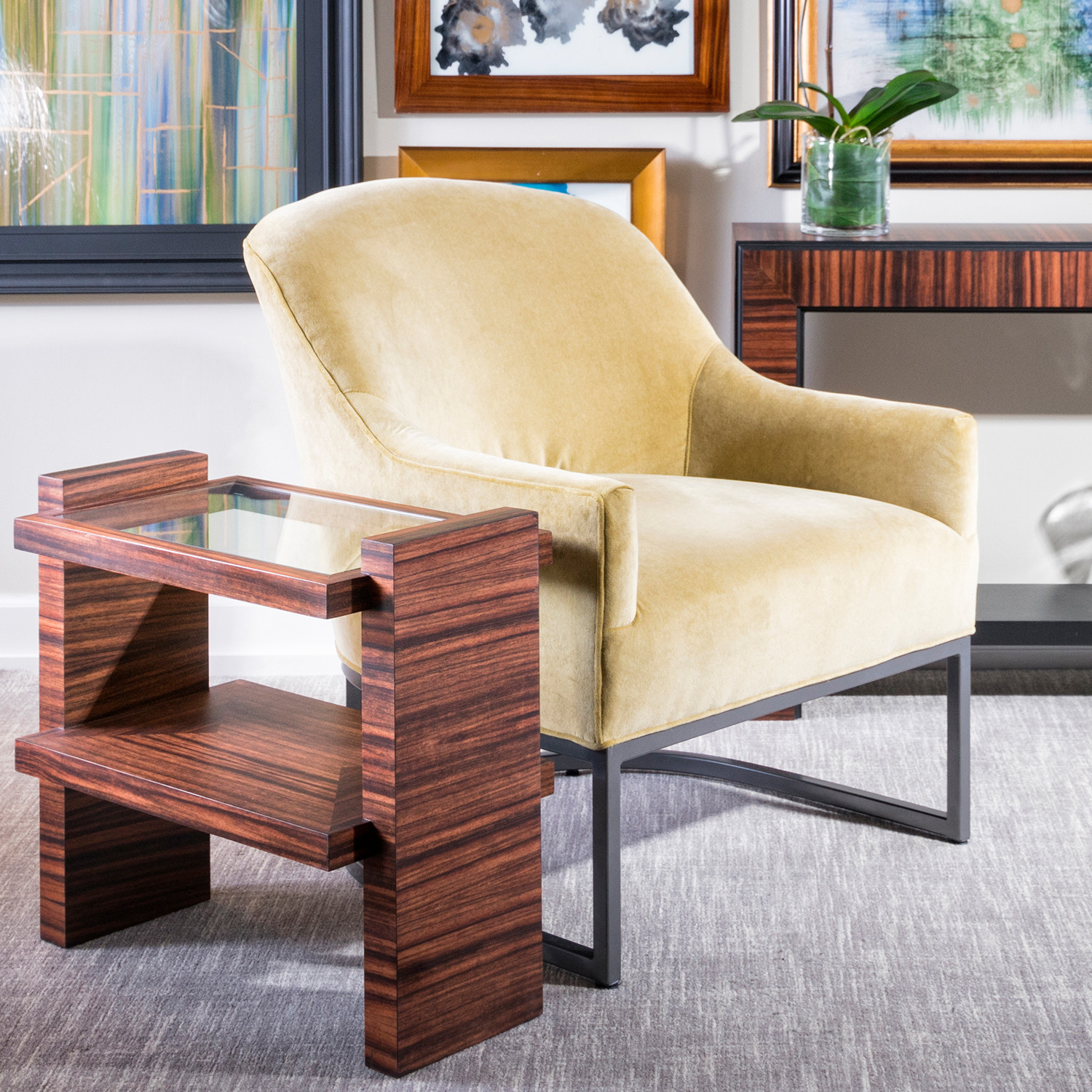 Krystof is as commanding as a work of modern sculpture. Modern planes of exotic ebony veneer surround Krystof’s bold silhouette. As a sophisticated side table or even small space media console, Krystof is an easy and refined addition to either traditional or contemporary spaces.