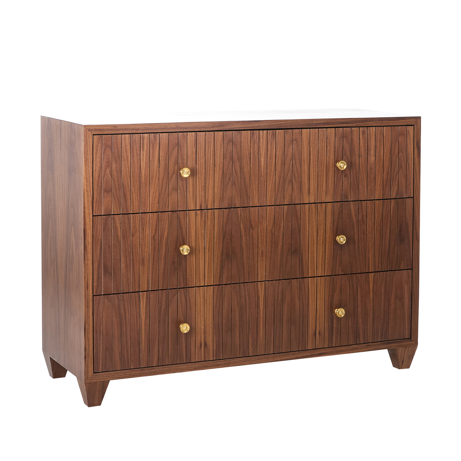 William cleverly features three drawers. Its rich warm walnut finish and proportions make it a storage piece with the look of a modern heirloom. Clean lines and easy elegance add to its understated presence.