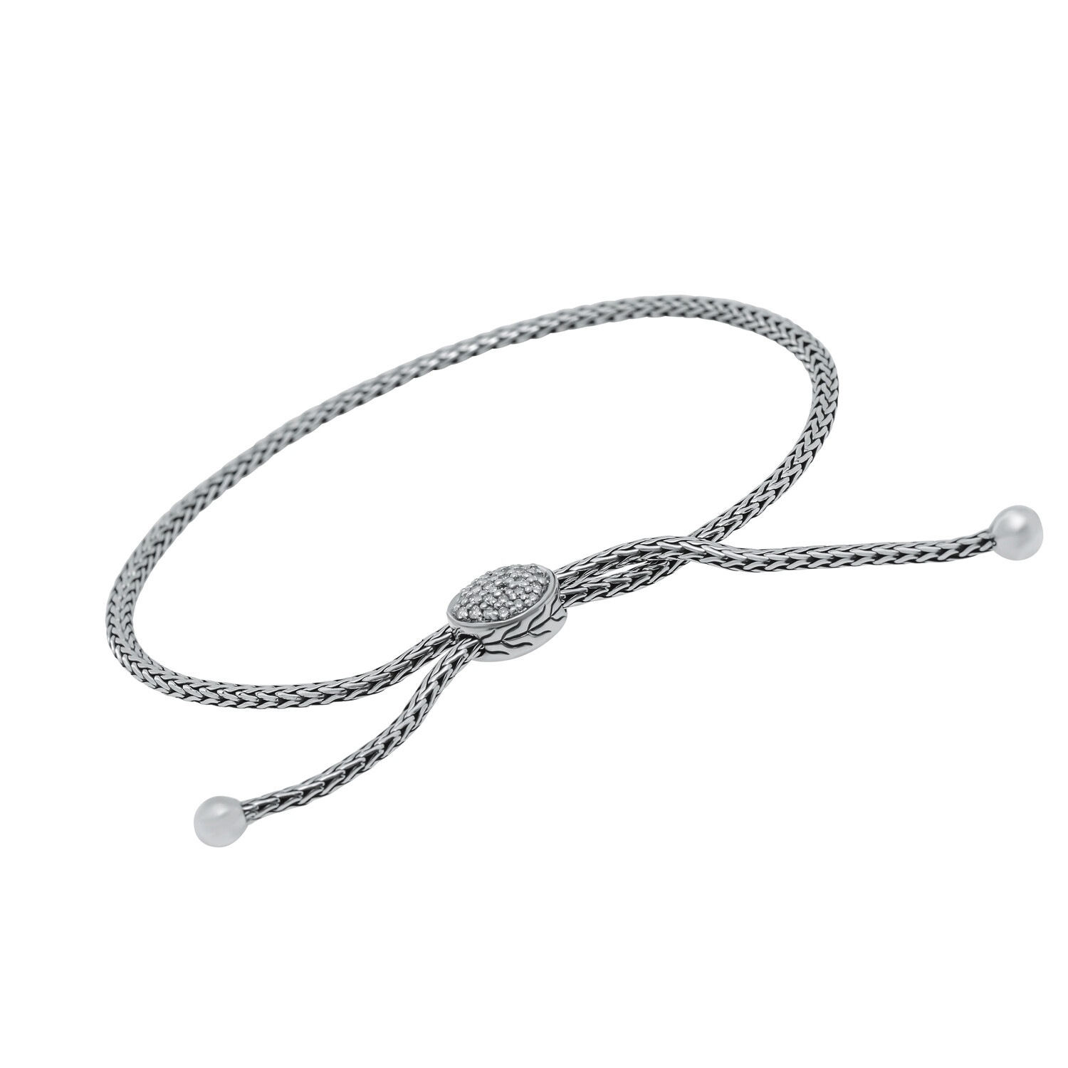 John Hardy Classic Chain Sterling Silver + Diamond Pull-Through Bracelet // 5"-9" // Store Display