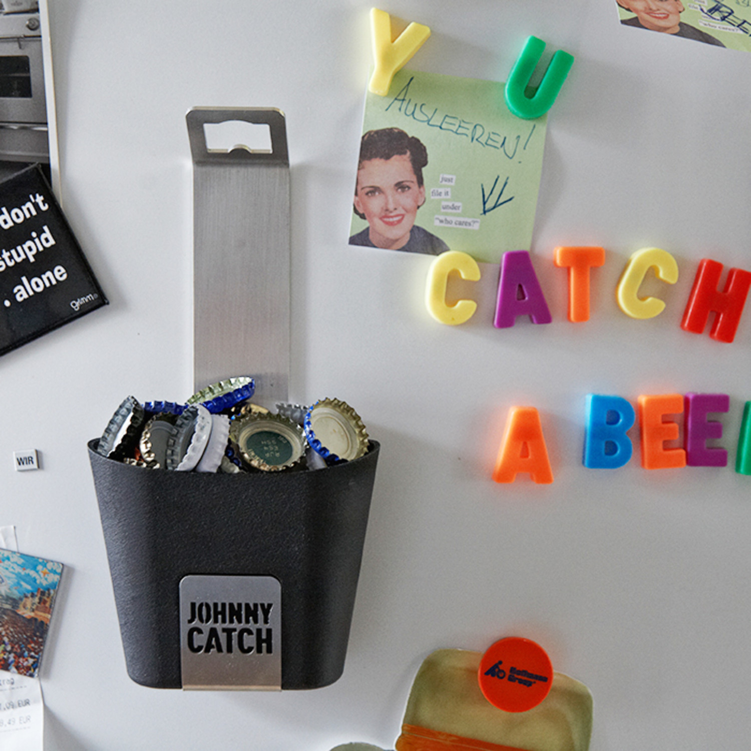 The Johnny Catch Cup is the world's most functional and minimalistic wall-mounted bottle opener! This cupped edition uses an integrated, sustainable cup to catch up to 60 corks at a time. It's the best way to crack a beer without any extra steps on the way out of the kitchen.