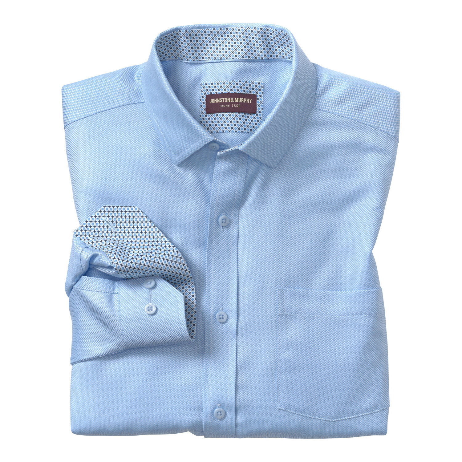 — Yarn-dyed dobby weave with non-iron construction and finishings.